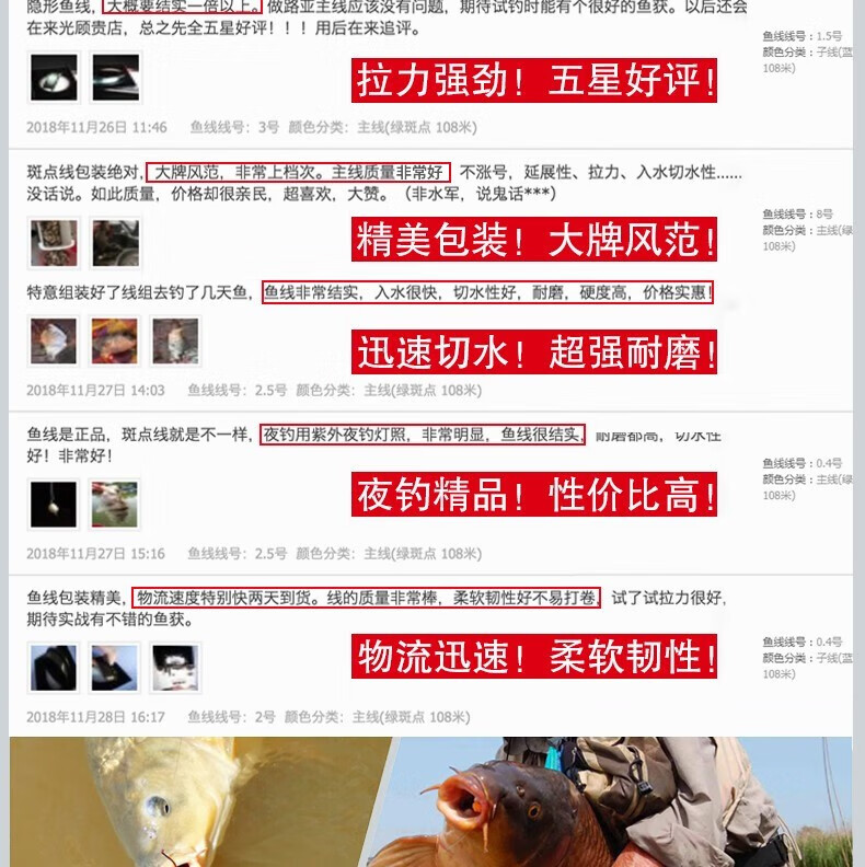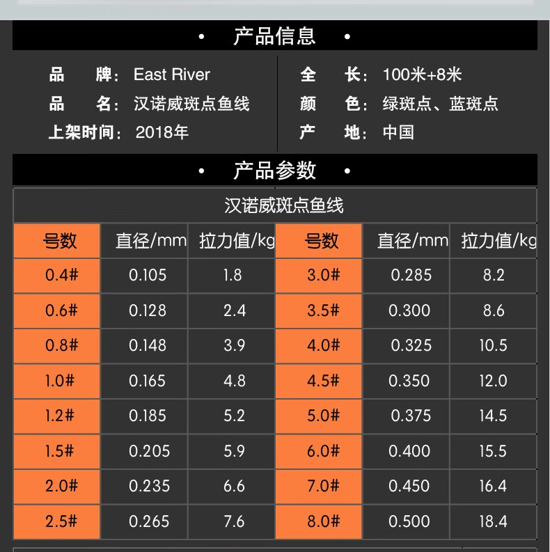 East River spotted fishing line main line sub-line German raw silk strong pulling lure long-range smooth invisible submersed fishing special line green spotted main line German raw silk 108 meters 2.0#