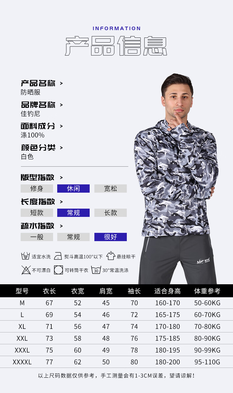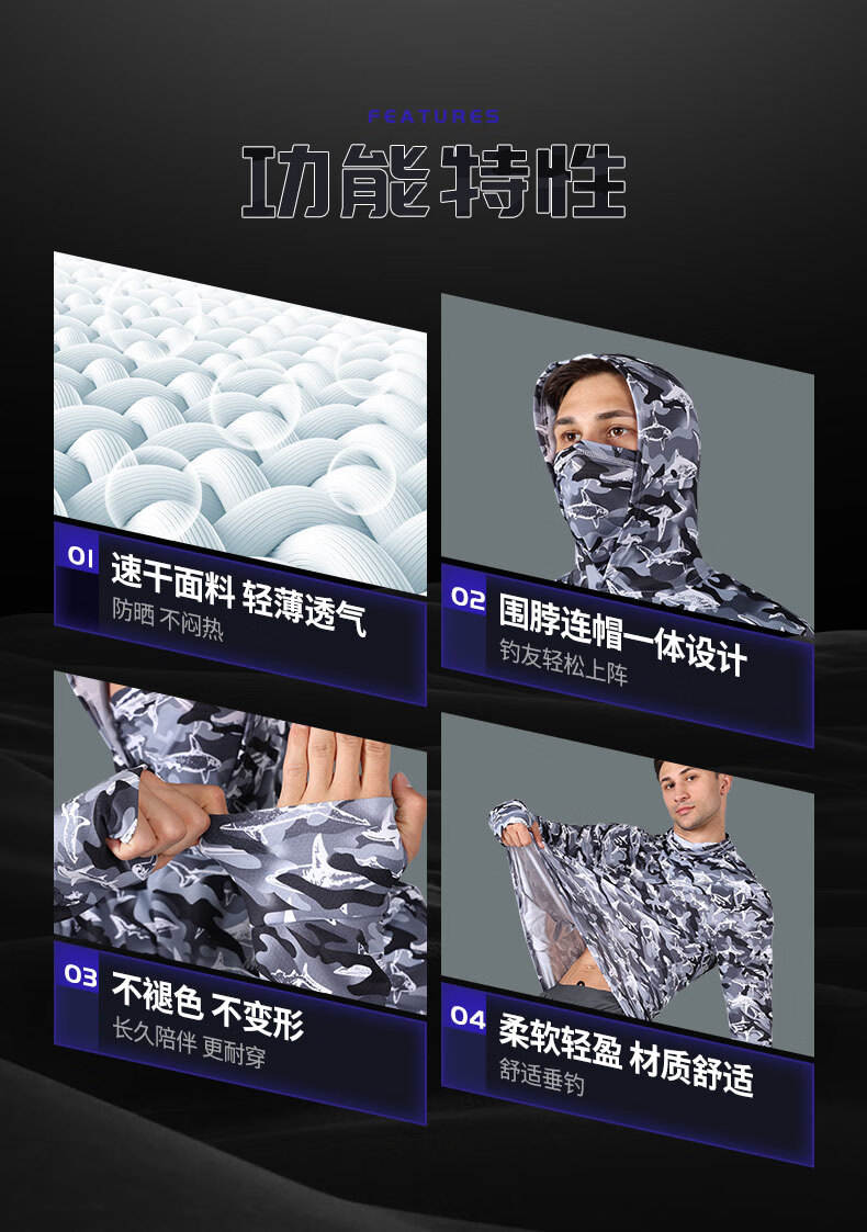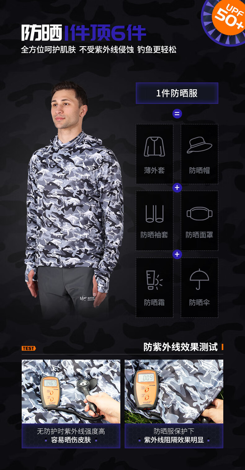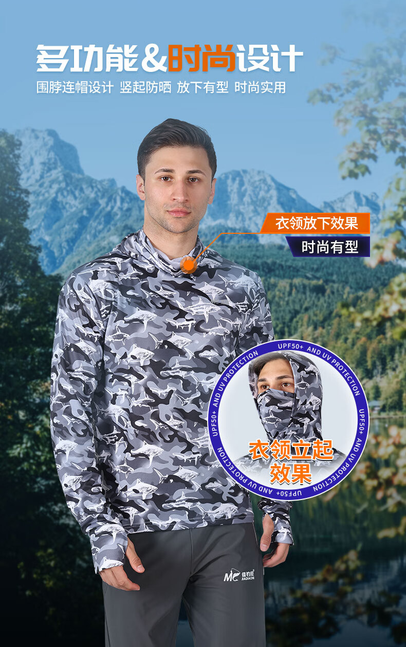 JIADIAONI quick-drying clothing ice silk sun protection fishing clothing hooded zipper anti-mosquito clothing breathable fishing clothing men's outdoor clothing Luya sun protection hydrophobic fishing clothing S style L