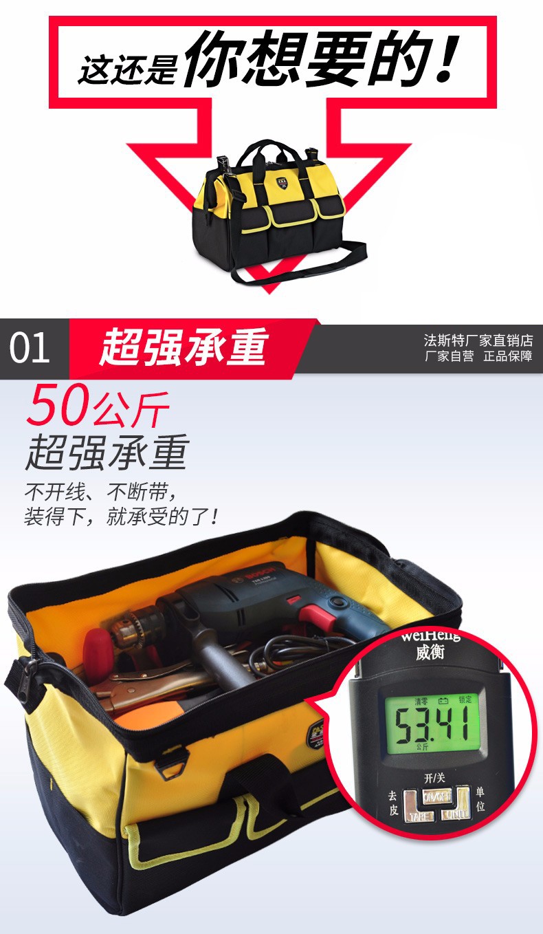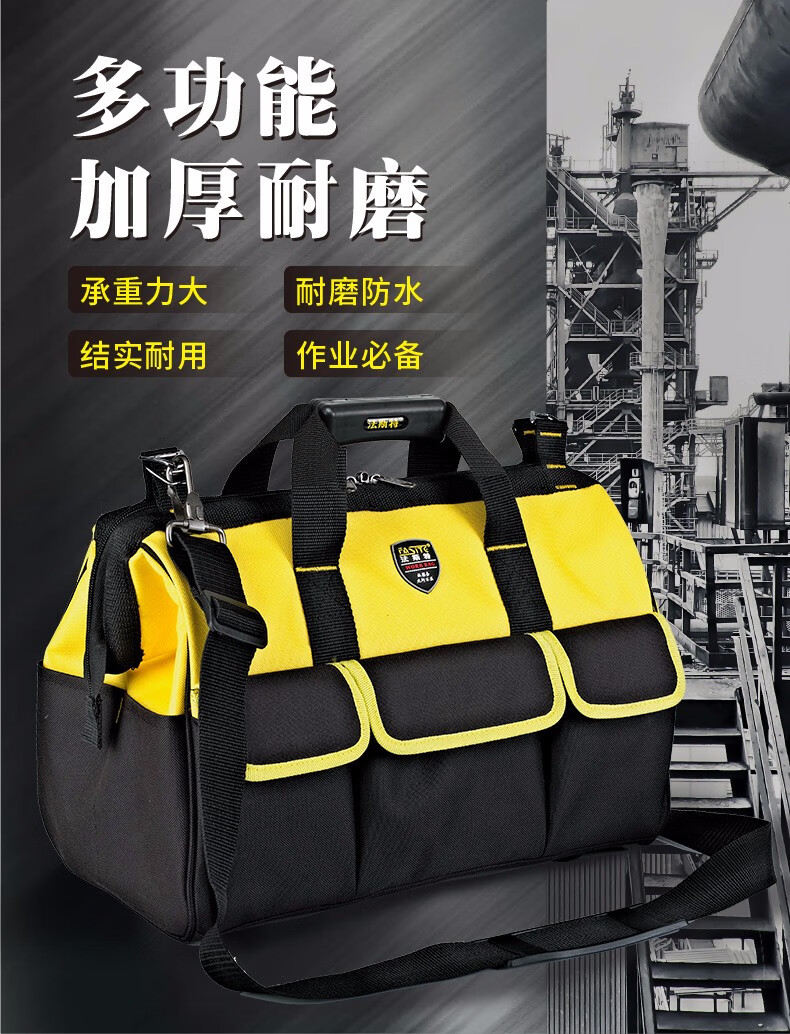 FASITE Tool Bag Canvas Wear-Resistant Multi-Function Diagonal Span Thickened Shoulder Portable Maintenance Large Tool Bag Special Electrician Bag Classic 15 Inch
