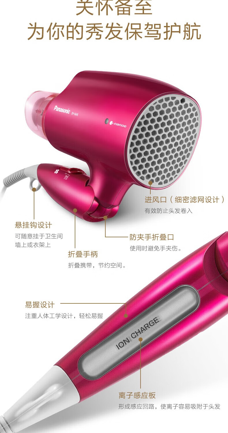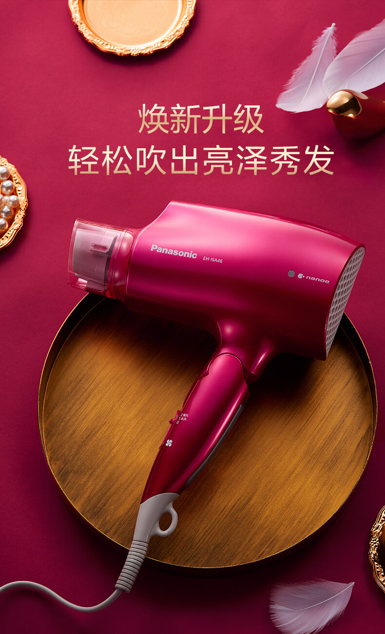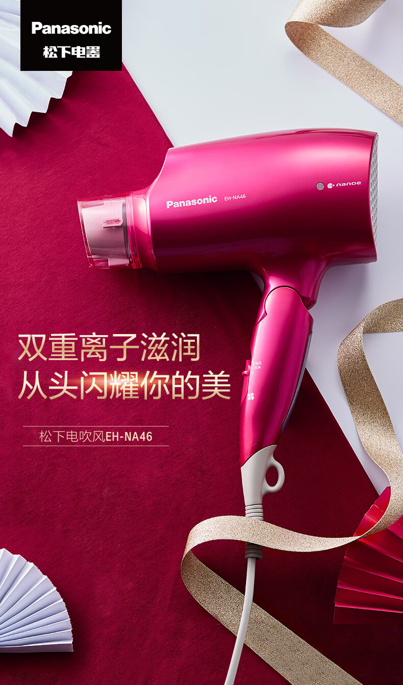 Panasonic Hair Dryer Nanoi Platinum Water Negative Ions Does Not Hurt Hair Hair Dryer Women's Thermostatic Hair Care Birthday Gift for Boyfriend and Girlfriend EH-NA46 Red