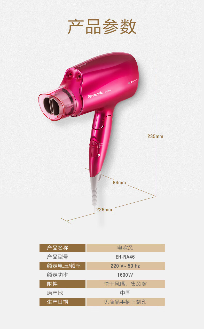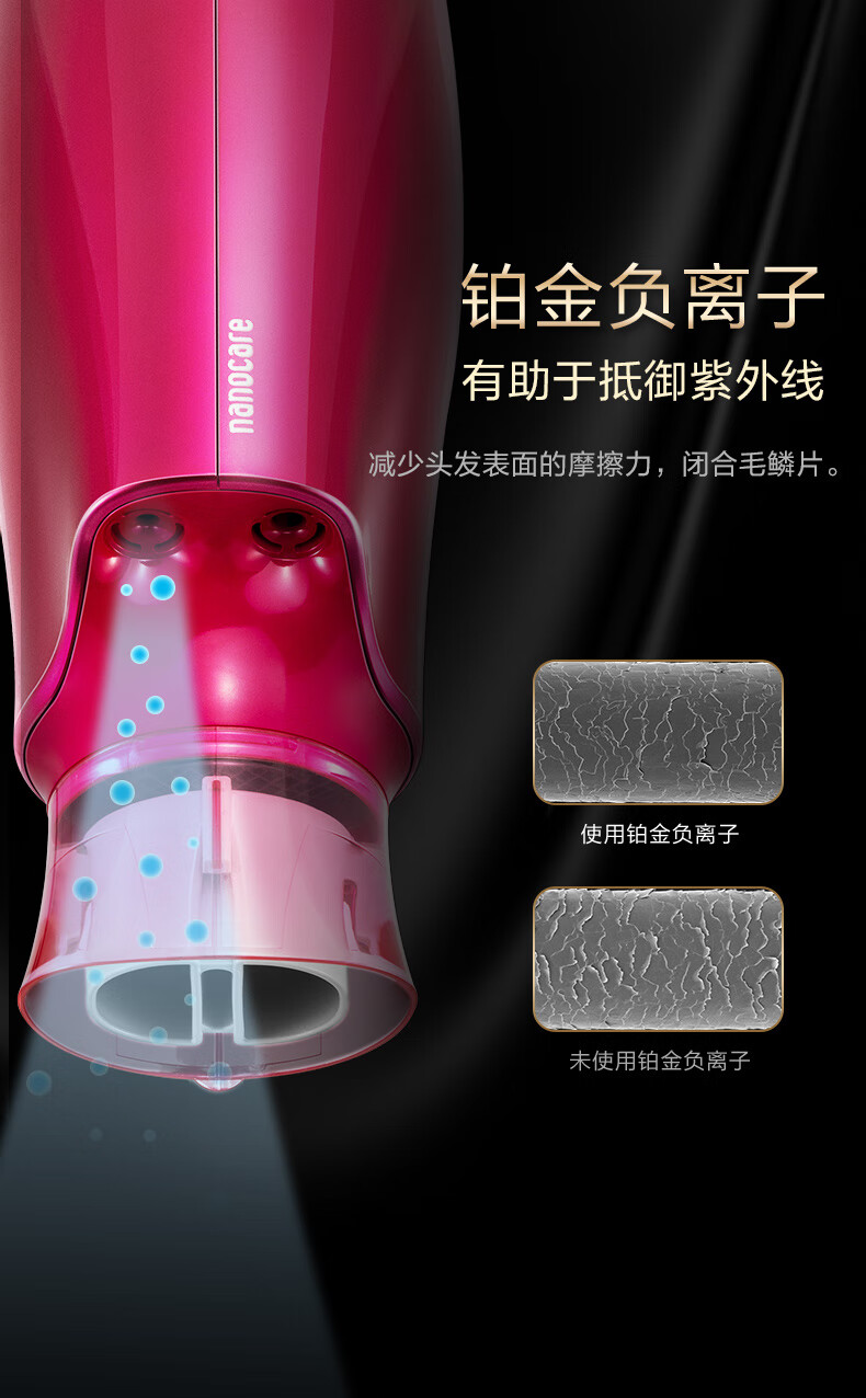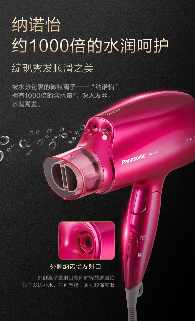 Panasonic Hair Dryer Nanoi Platinum Water Negative Ions Does Not Hurt Hair Hair Dryer Women's Thermostatic Hair Care Birthday Gift for Boyfriend and Girlfriend EH-NA46 Red