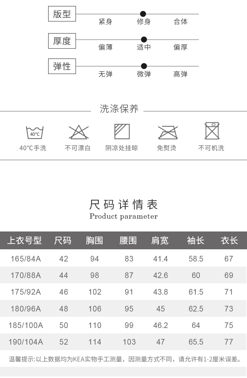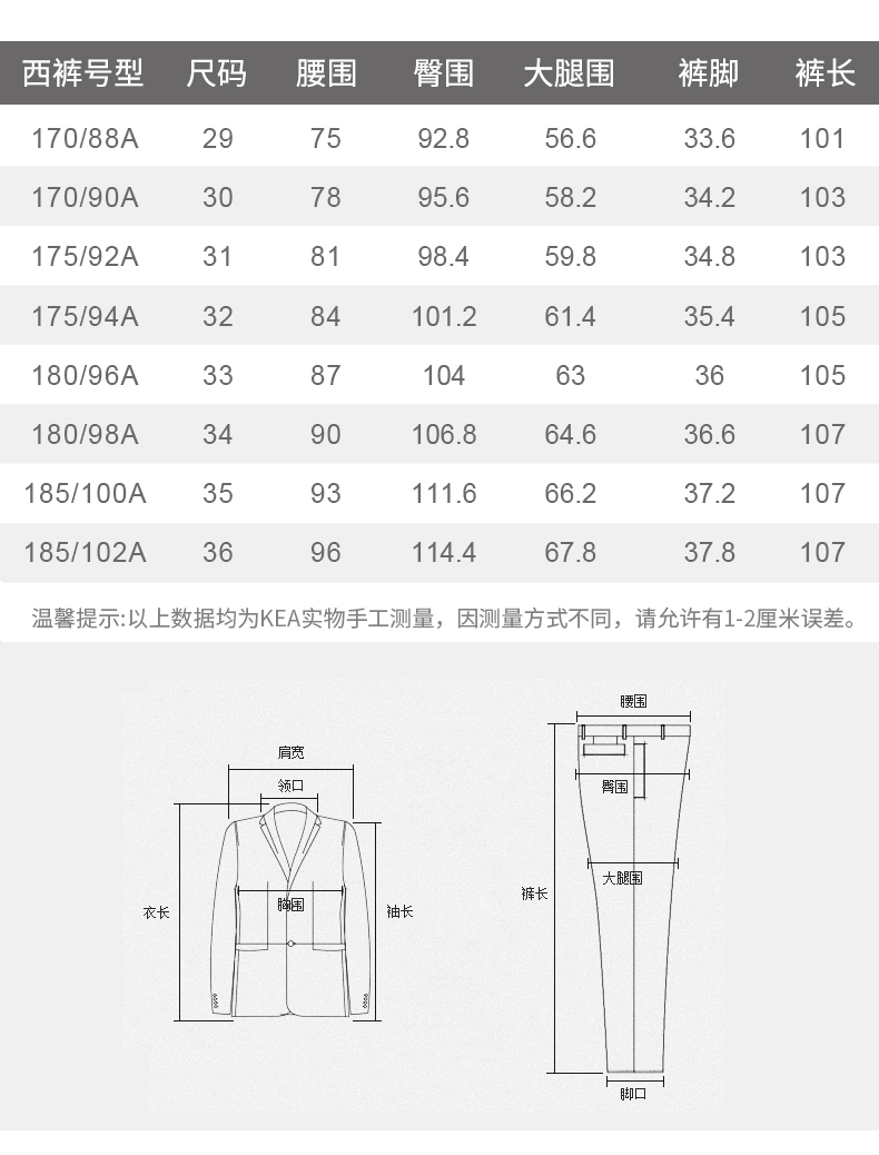 China (cm) 160-165/84-86 165-170 / 88-90 167-172 / 92-96 168-173 / 98-102 170-176 / 106-110