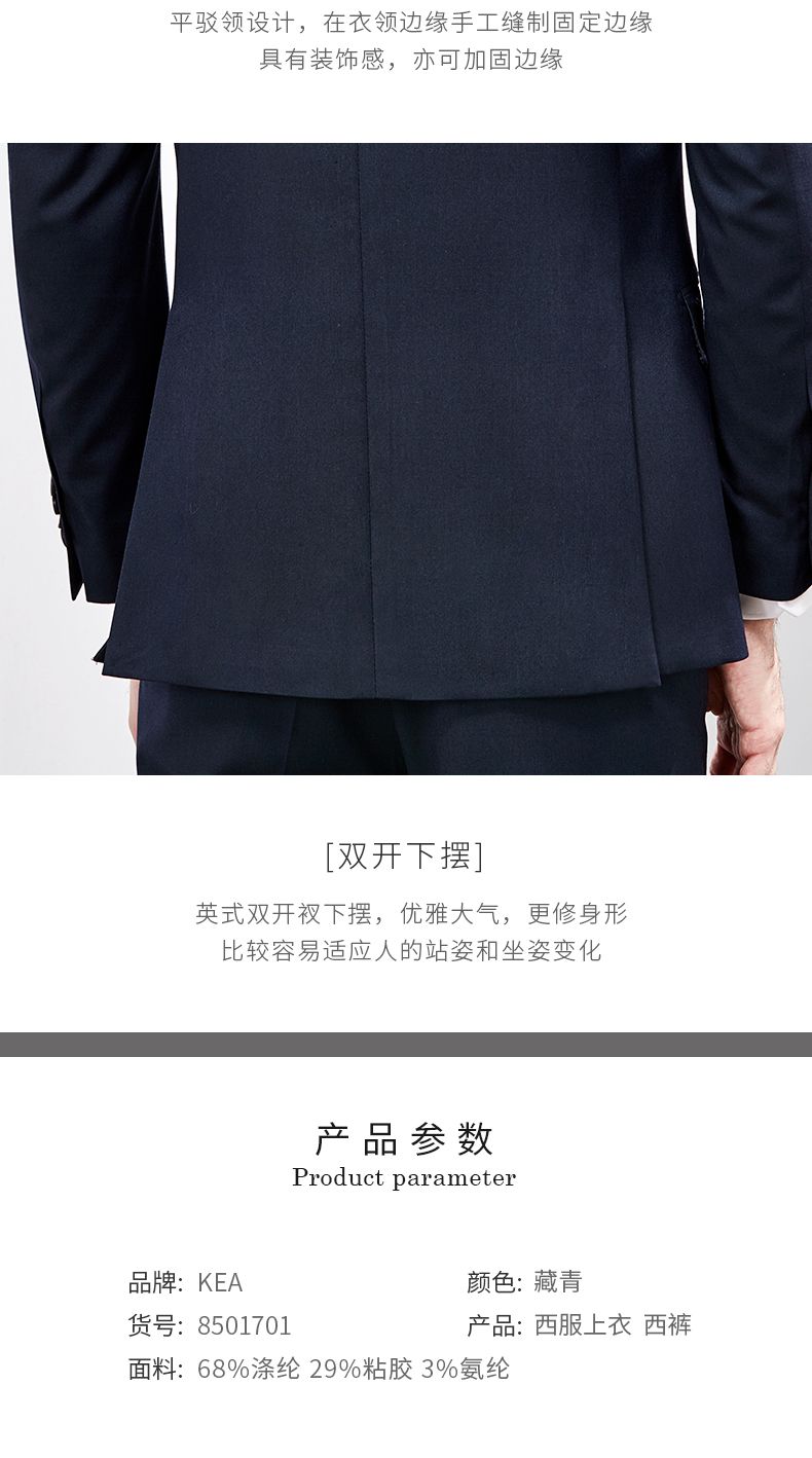 KEA spring and summer suit men's business slim professional formal attire groomsmen wedding suit navy blue groom wedding navy blue 170/88A(46A)
