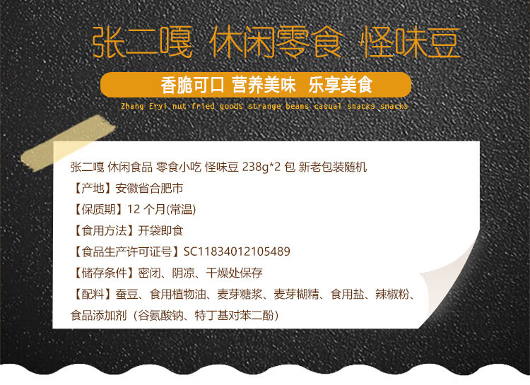Zhang Erga strange flavor bean orchid beans 238g*2 pack casual snack snacks new and old packaging random