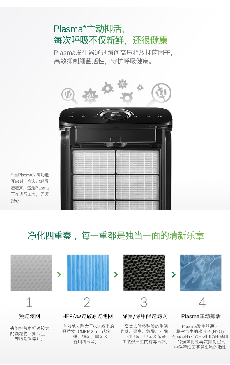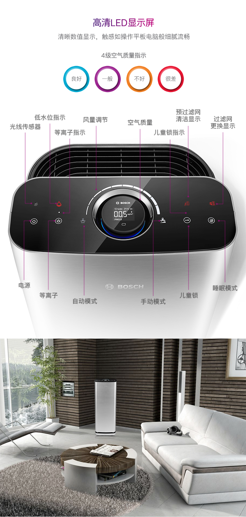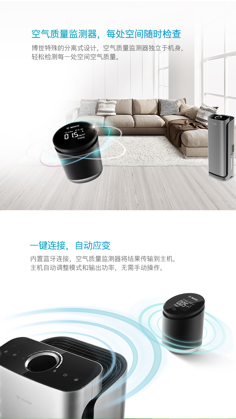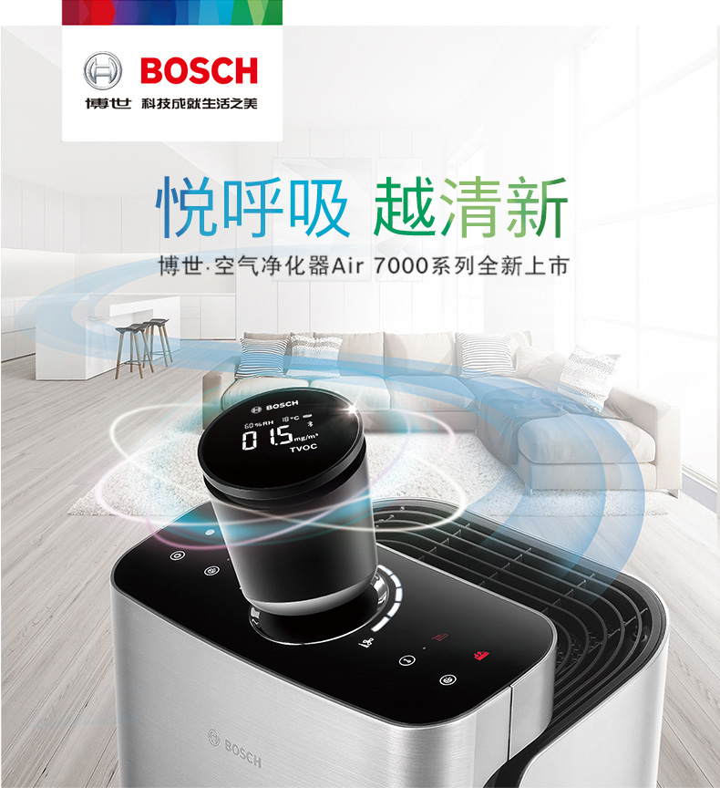 BOSCH German Bosch air purifier household high-end formaldehyde removal, sterilization, purification, pet hair and humidification all in one KJ700F-A7800N 700H C2 silver model (with humidification function)