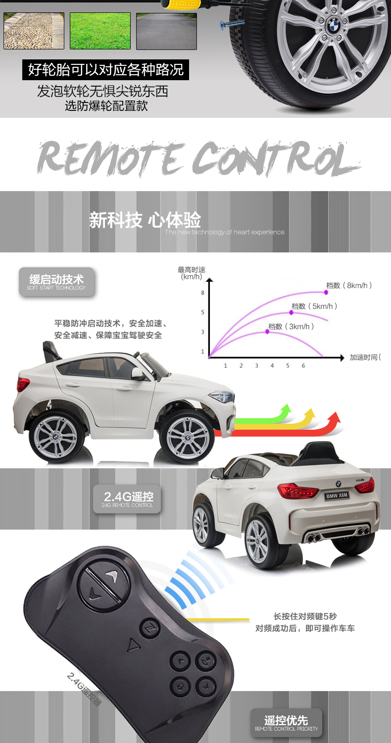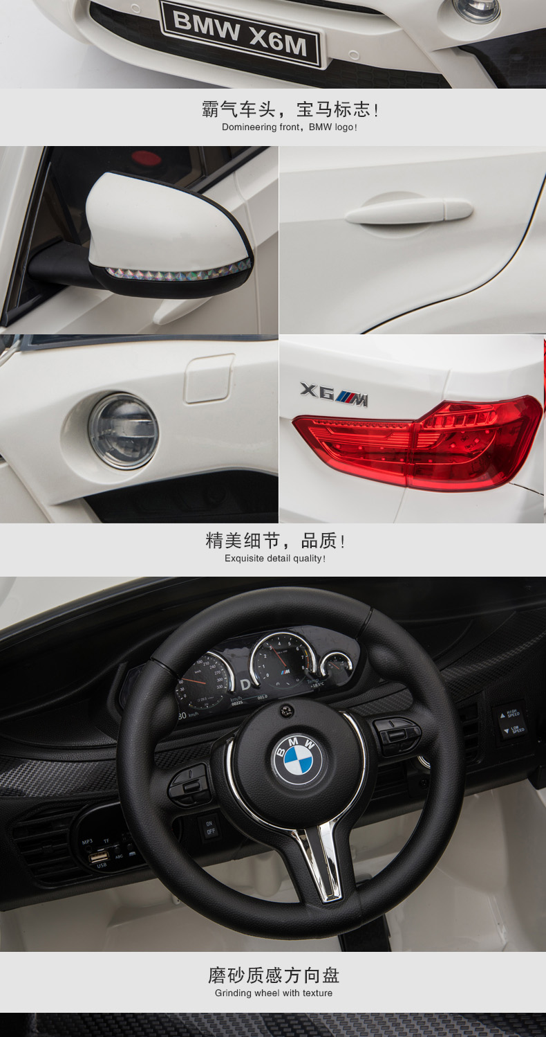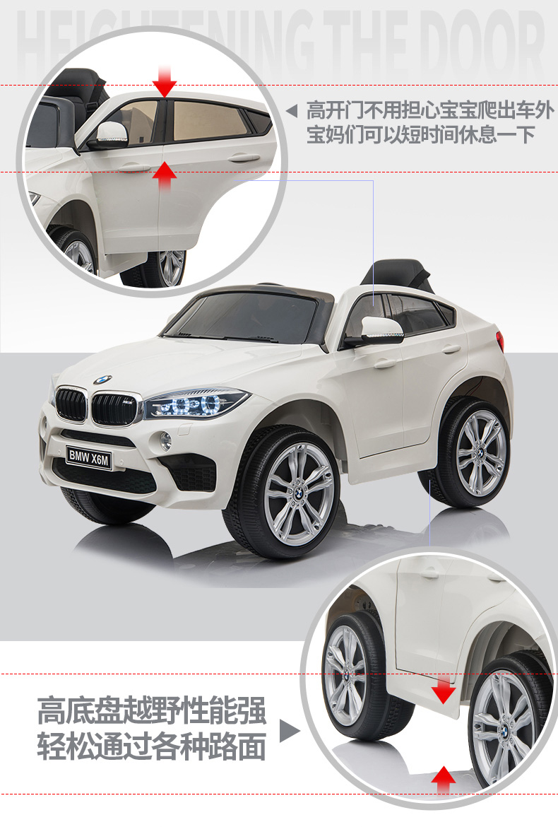 Berejia BMW children's electric car four-wheel with remote control swing off-road vehicle can sit on baby children's toys rechargeable car luxury red + soft wheel leather seat + remote control swing + seat adjustment + music Bluetooth