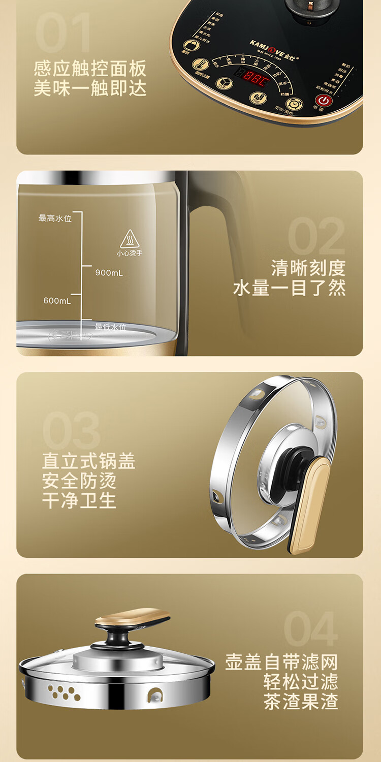 KAMJOVE fully automatic multi-functional reservation-friendly health pot glass teapot thermal insulation kettle flower teapot intelligent constant temperature pot bird's nest pot HT-590 amber gold 1.8L