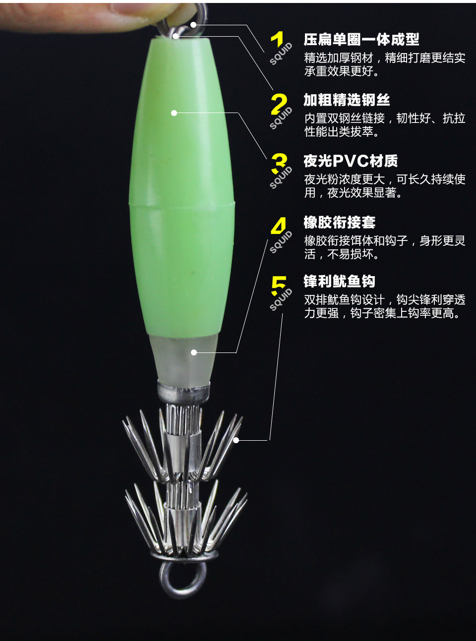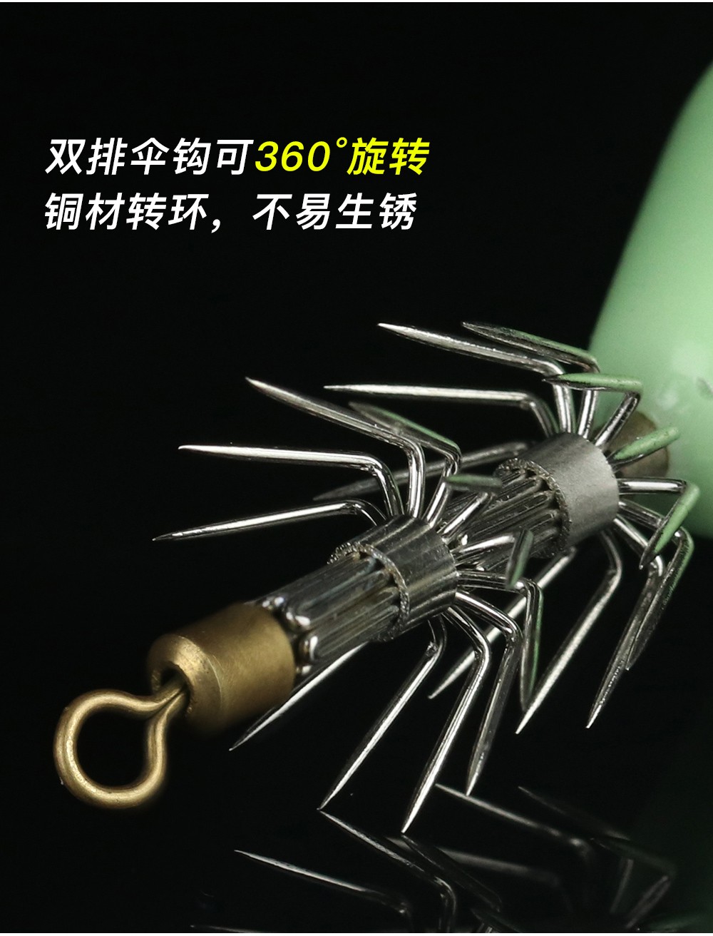 Weihe luminous squid hook for fishing octopus hook, night fishing double row 8-claw hook, umbrella hook, fluorescent wood shrimp sea fishing hook, luminous squid hook