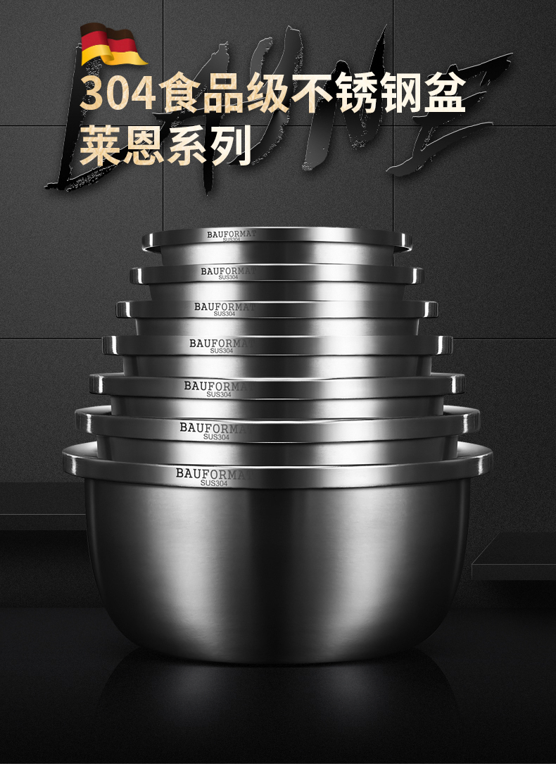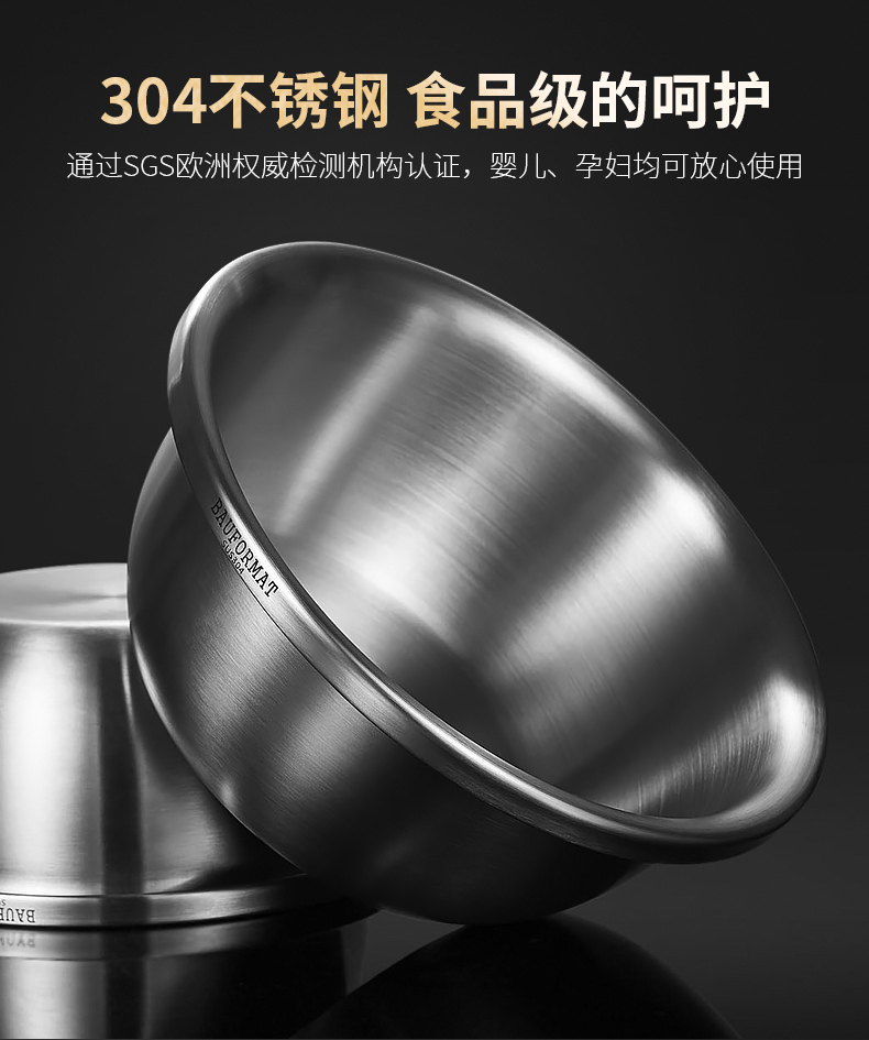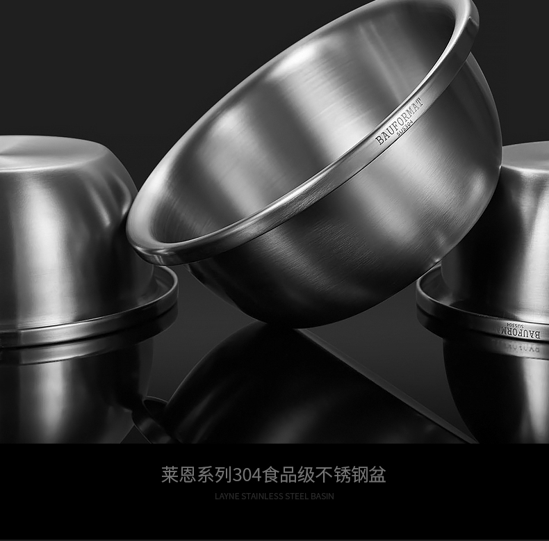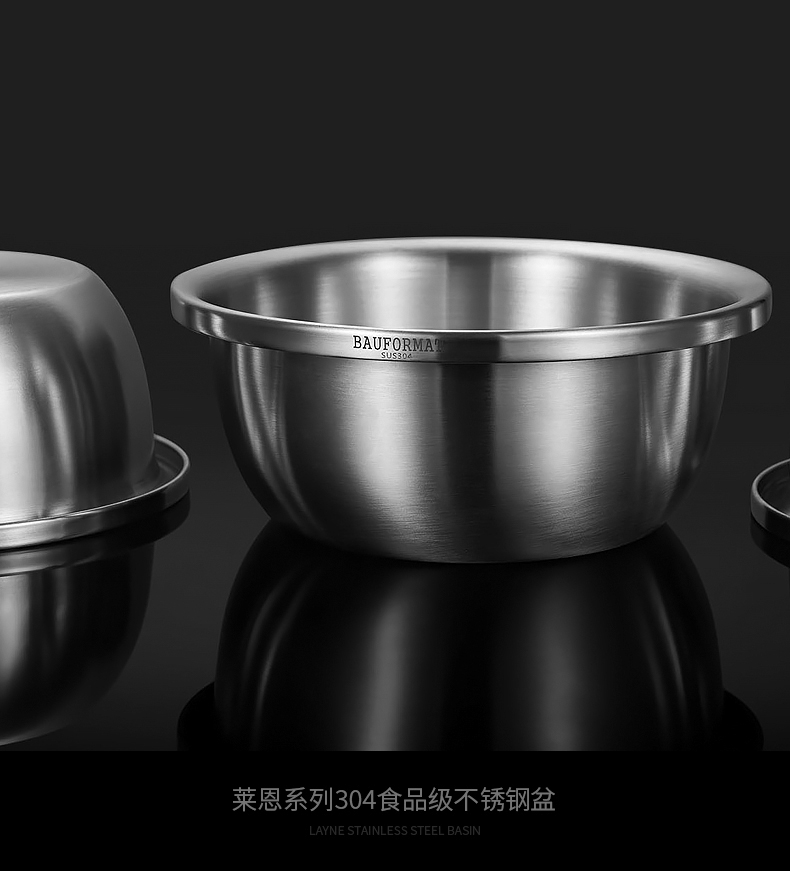 Boffman German food-grade 304 stainless steel egg-beating small iron basin household noodle kitchen vegetable washing large basin soup basin extra thick and deepened 22cm