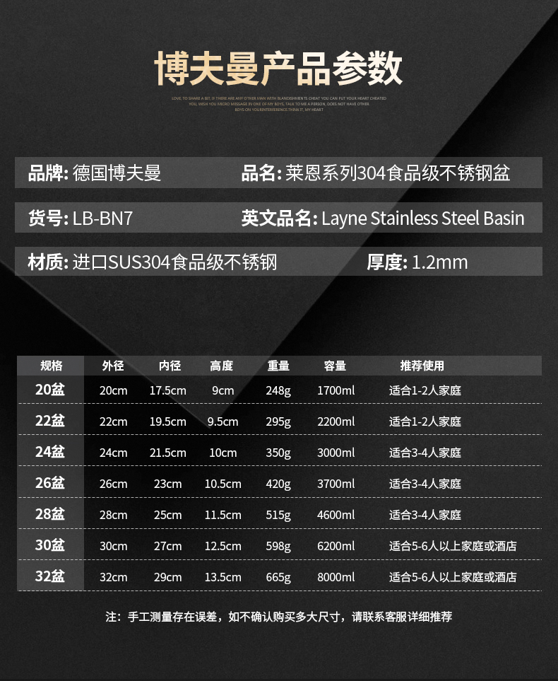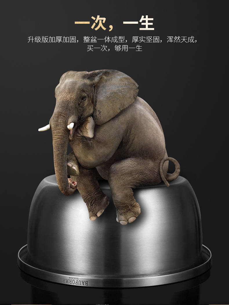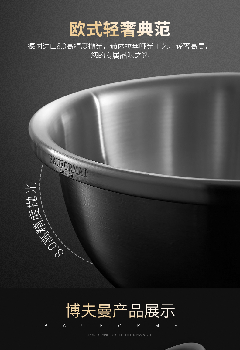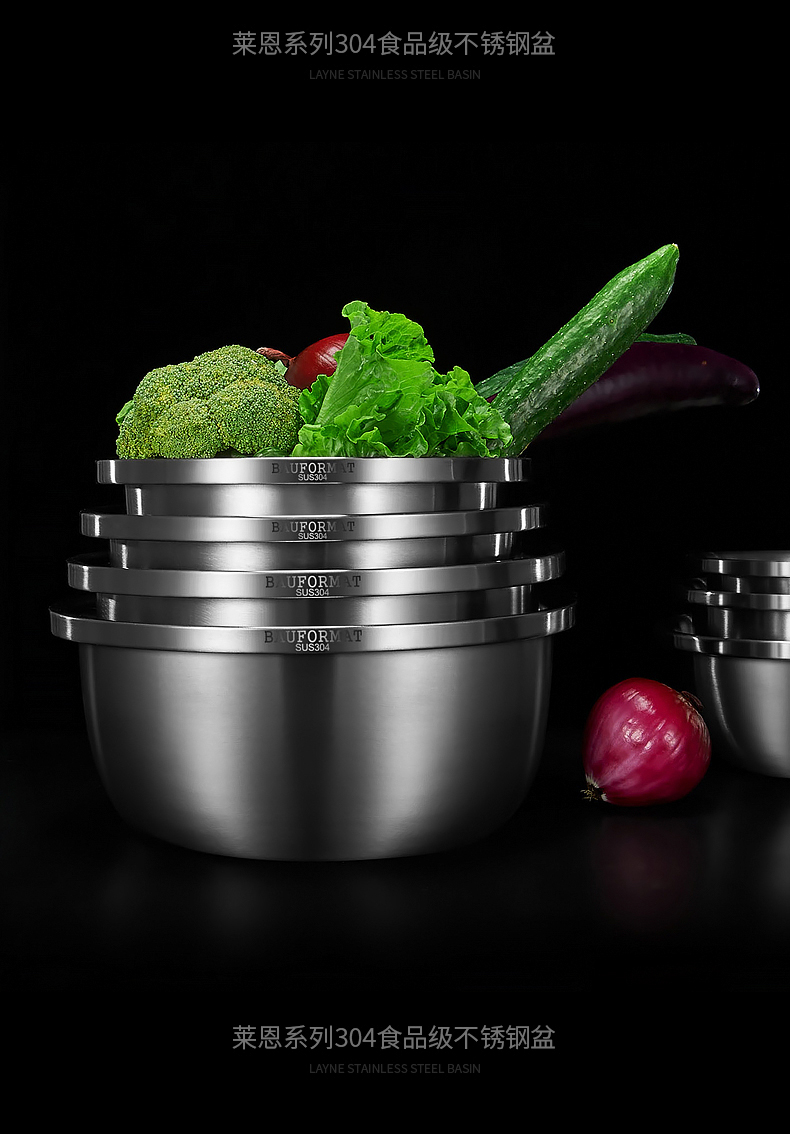 Boffman German food-grade 304 stainless steel egg-beating small iron basin household noodle kitchen vegetable washing large basin soup basin extra thick and deepened 22cm