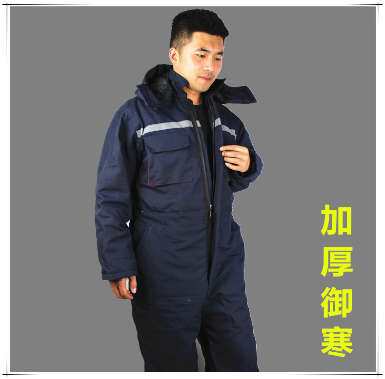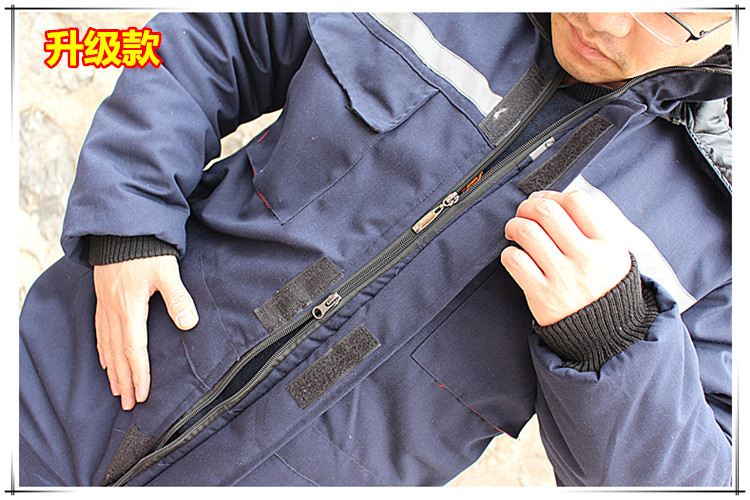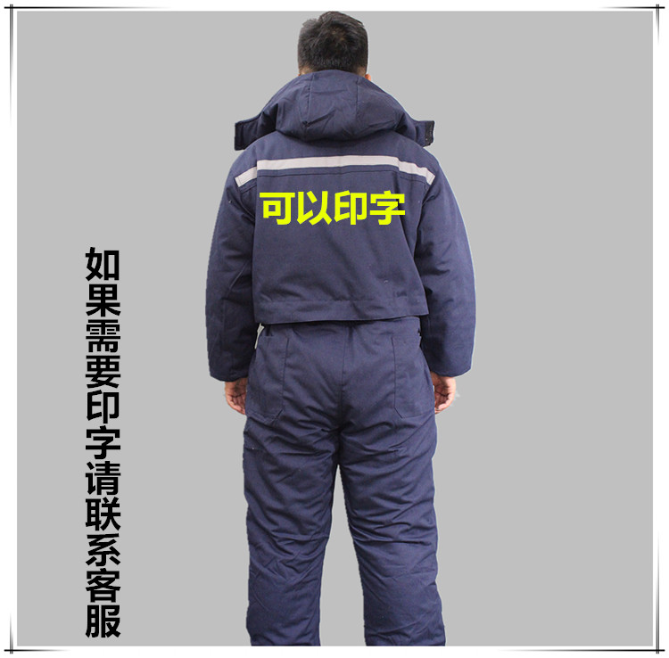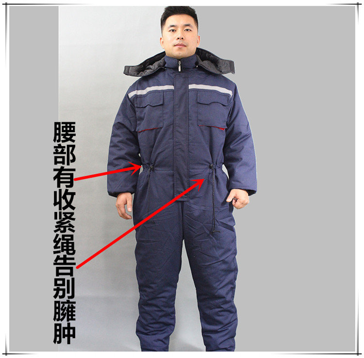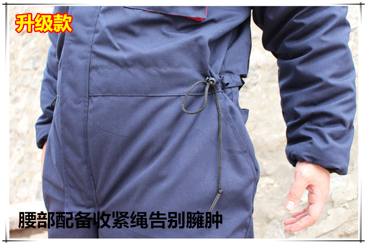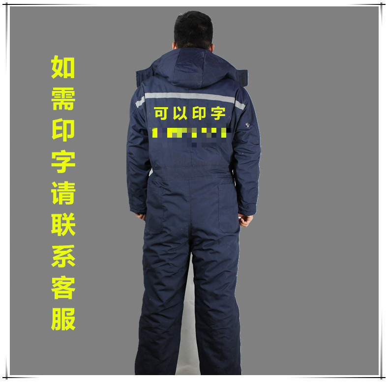Xining cold storage frozen thickened warm jumpsuit cotton work clothes men's winter outdoor cold-proof warm work clothes long-term low temperature resistant clothing navy blue upgraded rear waist zipper 175/XL