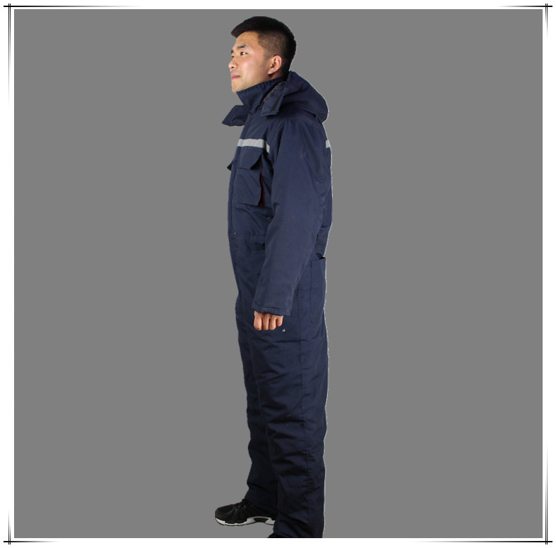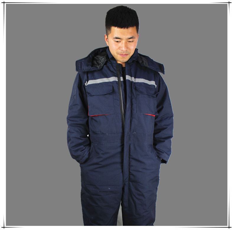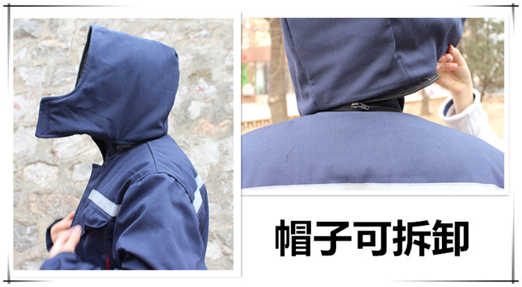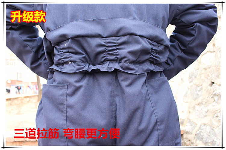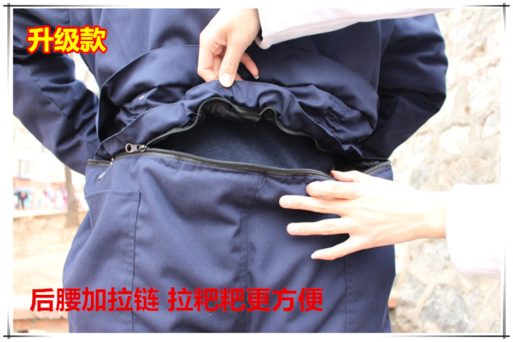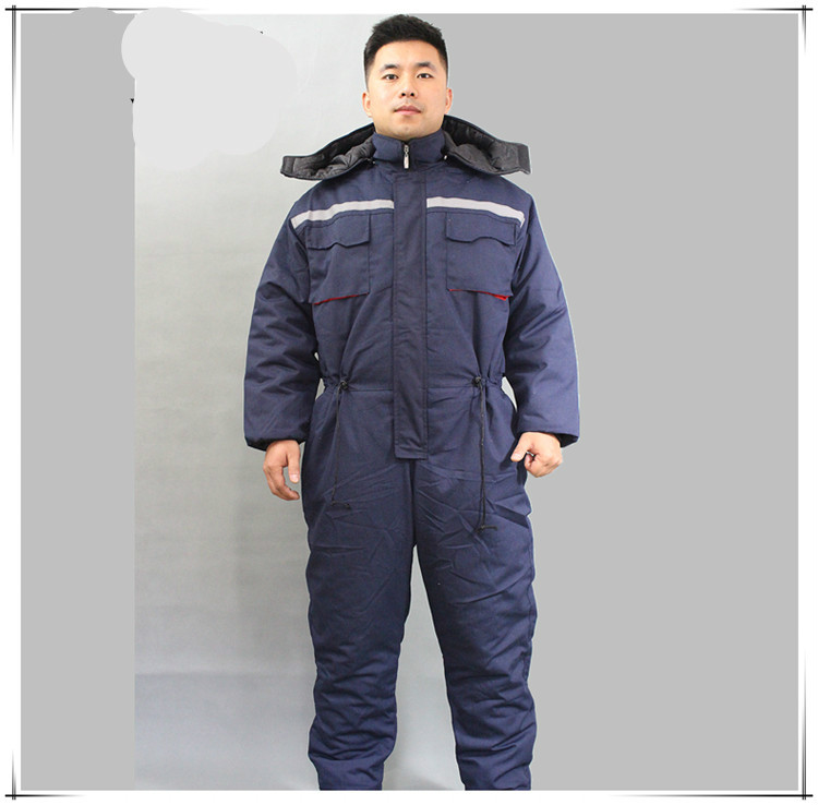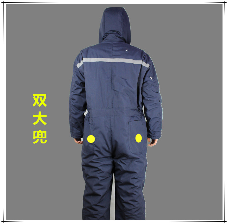 Xining cold storage frozen thickened warm jumpsuit cotton work clothes men's winter outdoor cold-proof warm work clothes long-term low temperature resistant clothing navy blue upgraded rear waist zipper 175/XL
