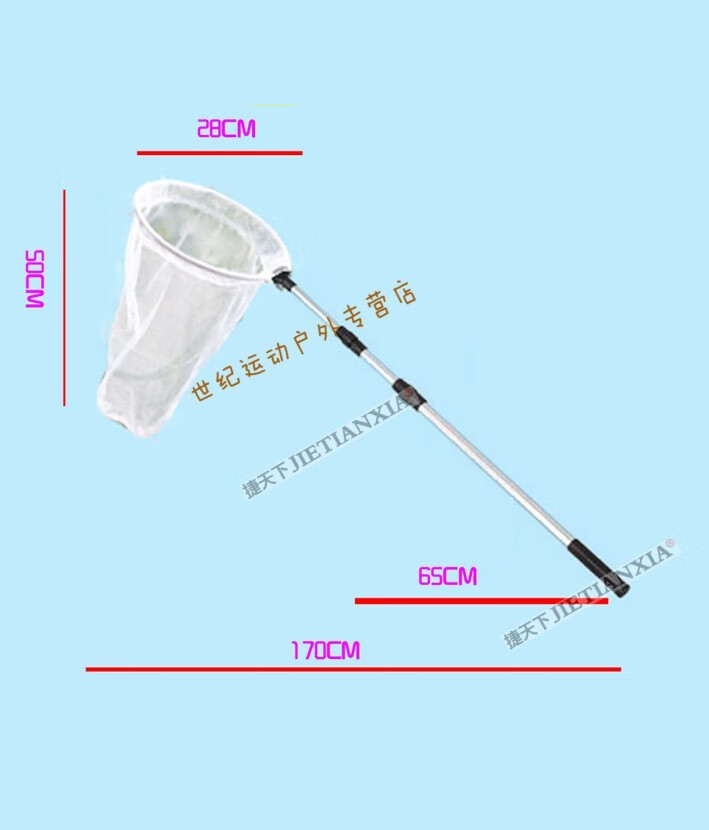 Jietianxia 1.7 meters telescopic extended children's insect catching net for catching butterflies, dragonflies, insects, fishing net, shrimp tadpole fishing net, with white net head 28cm