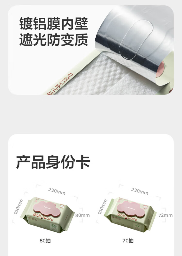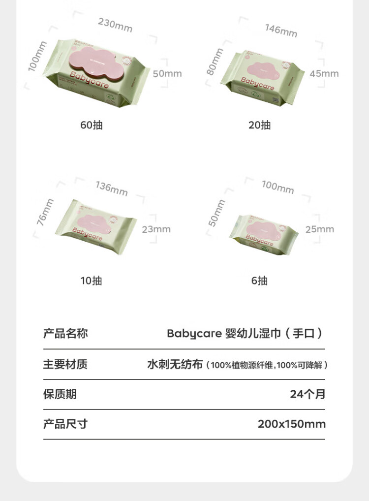 Babycare baby hand and mouth wipes newborn thickened face wipes small bag portable travel 6480 purple cover wet wipes 20 pumps 10 packs