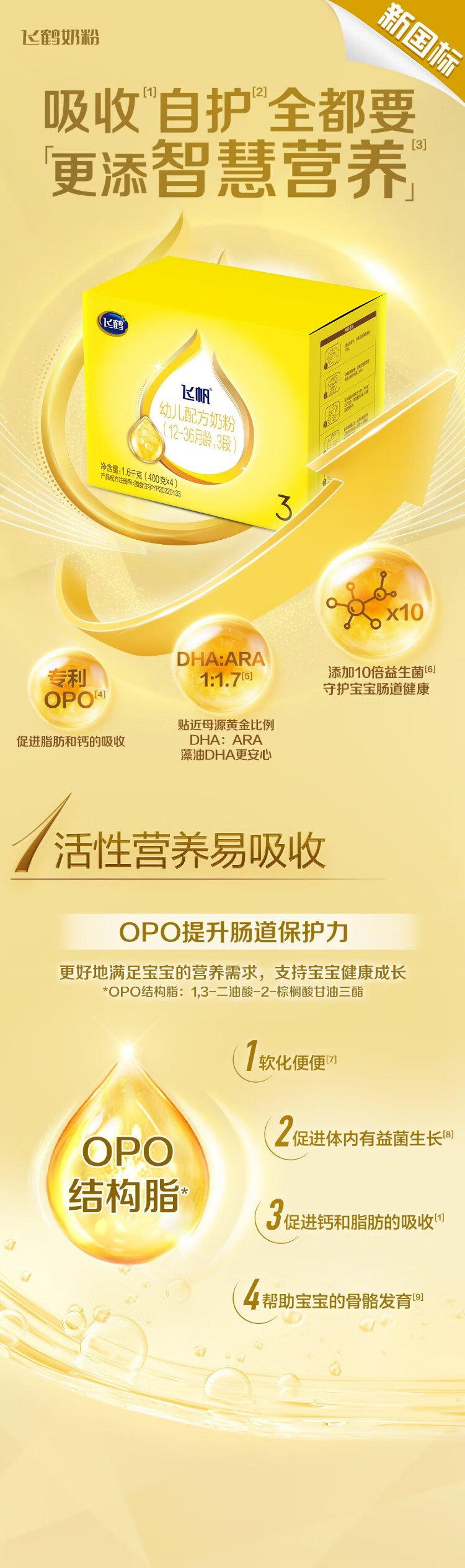 Feihe Feifan OPO promotes absorption of infant formula milk powder 3 stages (12-36 months) 1600g DHA good brain power