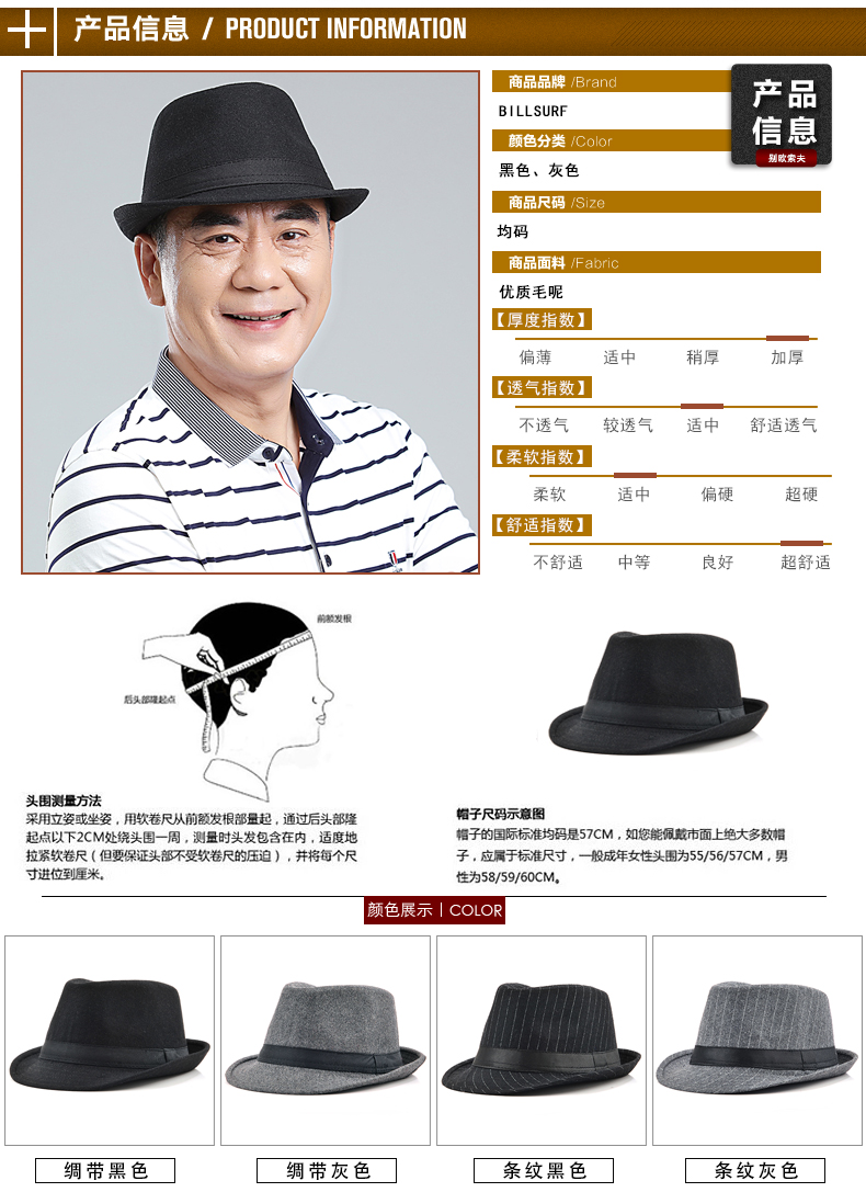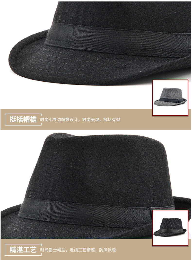 BILLSURF Woolen Hat Men's Autumn and Winter Matching Hat Middle-aged and Elderly Casual Jazz Hat Dad Black British Hat Men's Flat Ribbon-Gray One Size 56-58