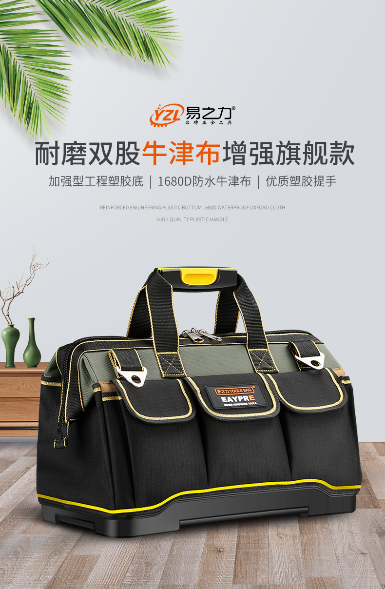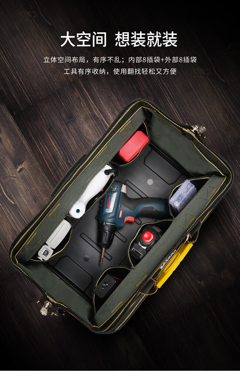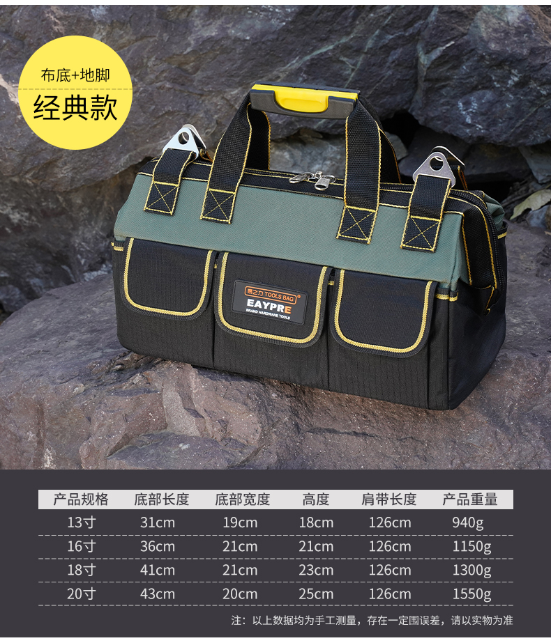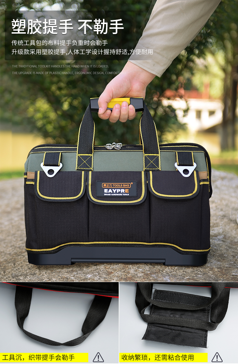 Yizhili Hardware Electrician Tool Bag New Wear-Resistant Canvas Bag Large Thickened Multifunctional Woodworking Repair Portable Small Tool Bag Classic 20 Inch + Parts Box