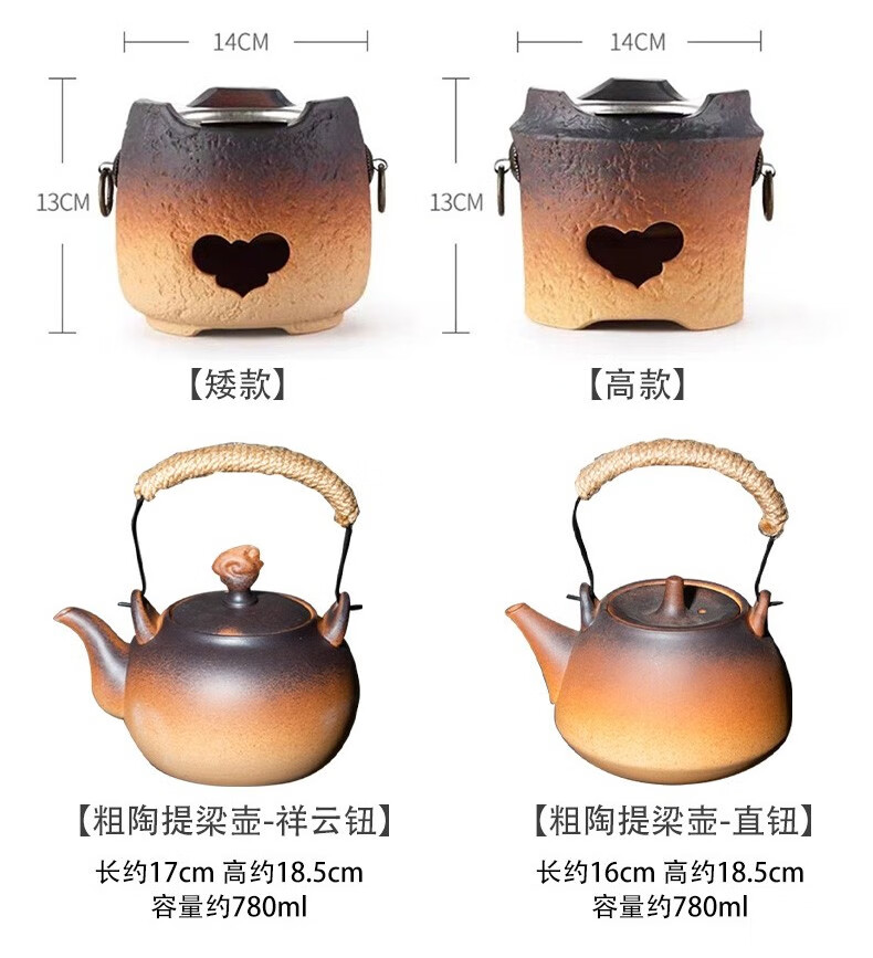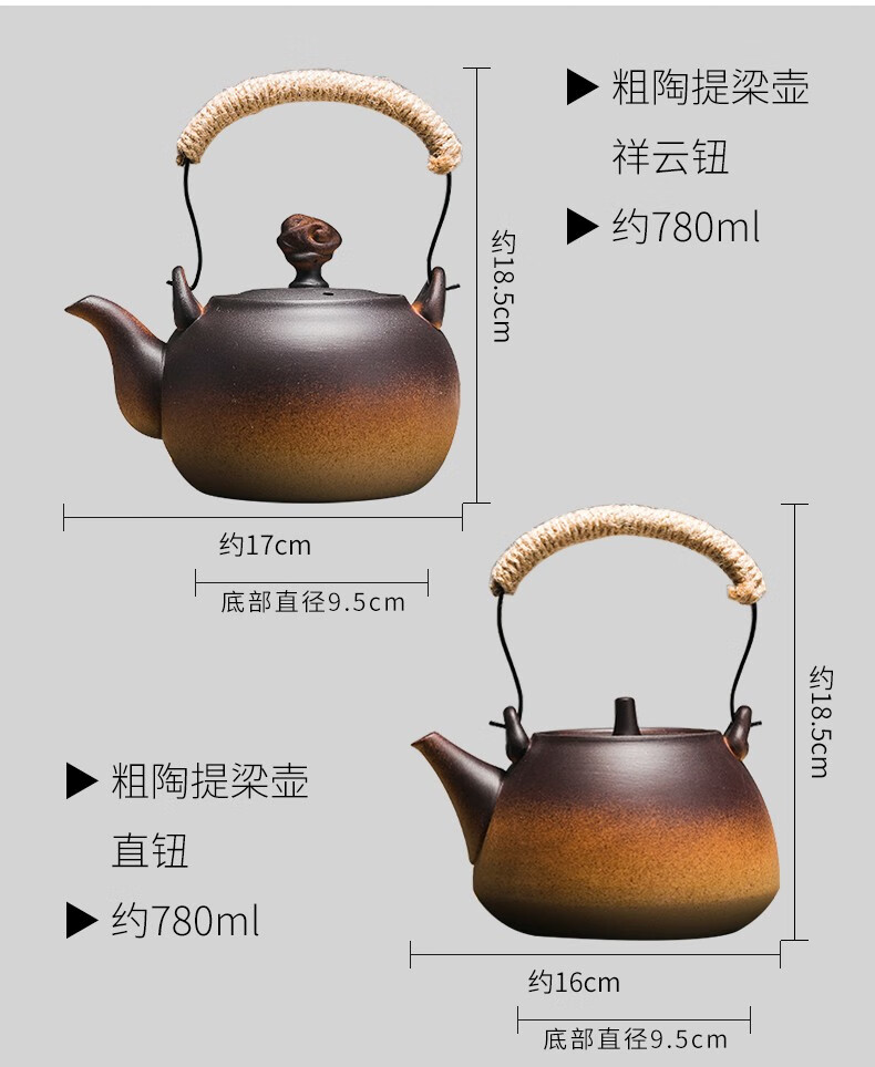 Rongshantang coarse pottery teapot, tea set, tea set, tea kettle, kettle, electric ceramic stove, charcoal stove, alcohol stove, coarse pottery teapot - Xiangyun button 780ml