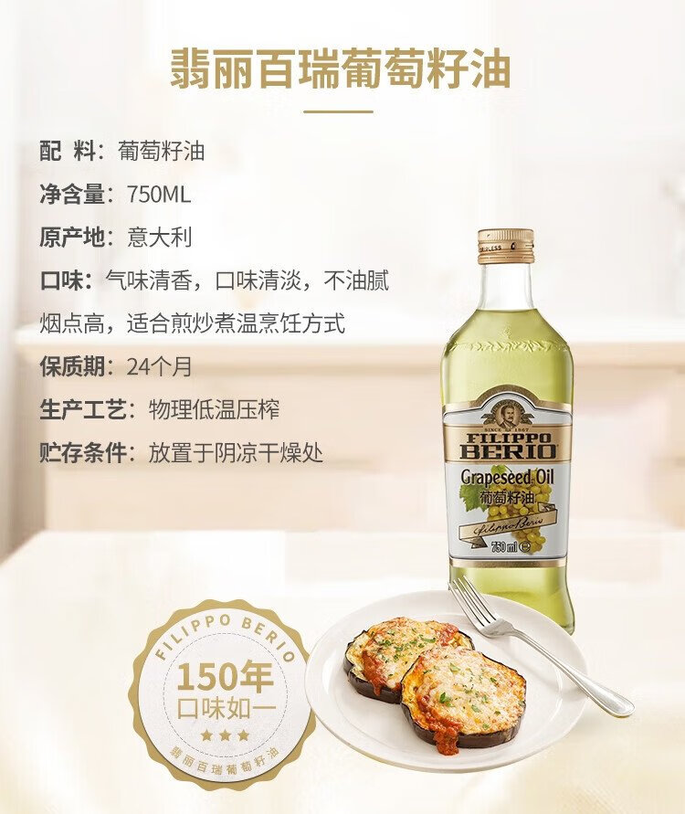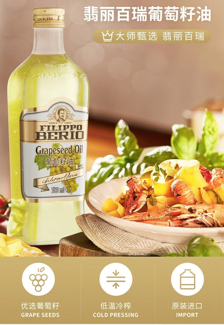 FILIPPO BERIO grape seed oil 750ML imported from Italy edible oil FILIPPO BERIO light and high temperature cooking oil