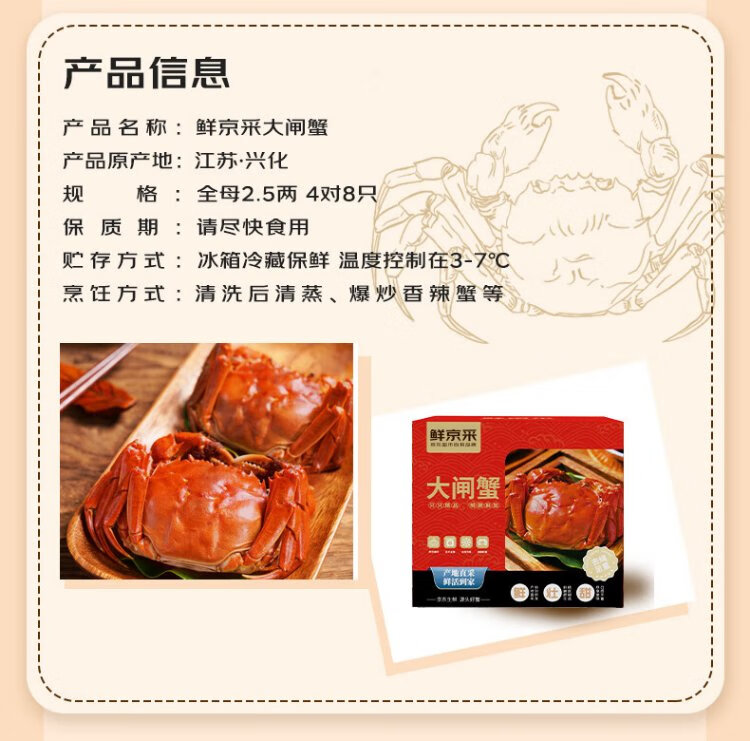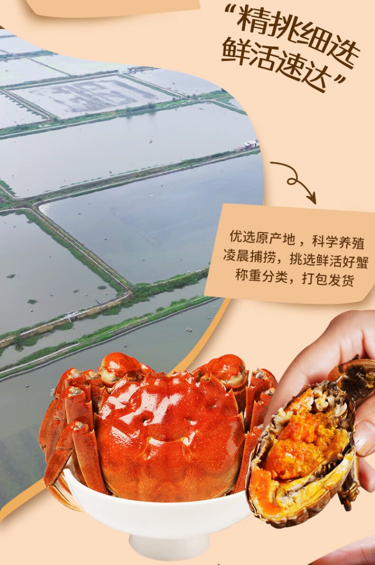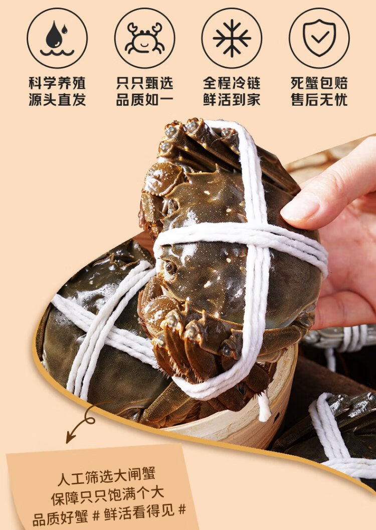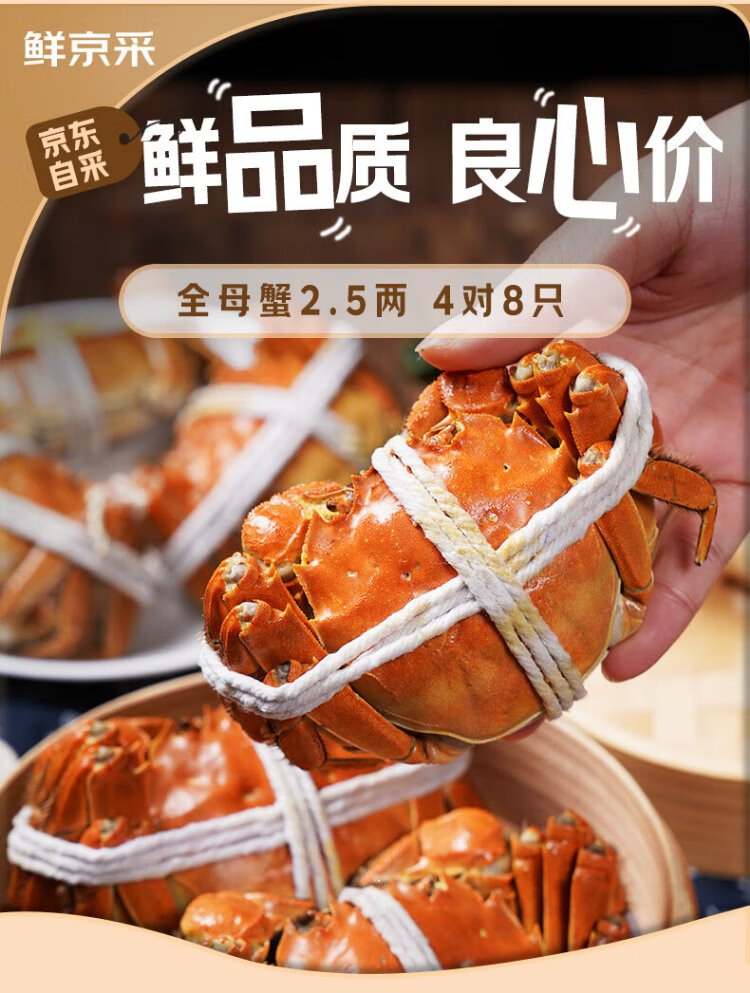 Live crabs, fresh hairy crabs from Xianjing, 2.5 taels of whole female crabs, 4 pairs of 8 pieces, rope-free full-weight crabs, river crabs, fresh gift box