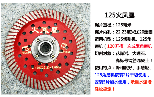 Red Knight Fire Phoenix 110/125/156/188 stone corrugated sheet angle grinder diamond cutting sheet marble saw blade 230 corrugated sheet