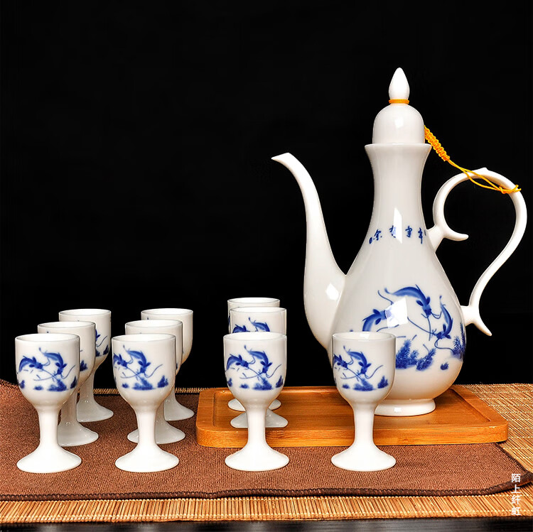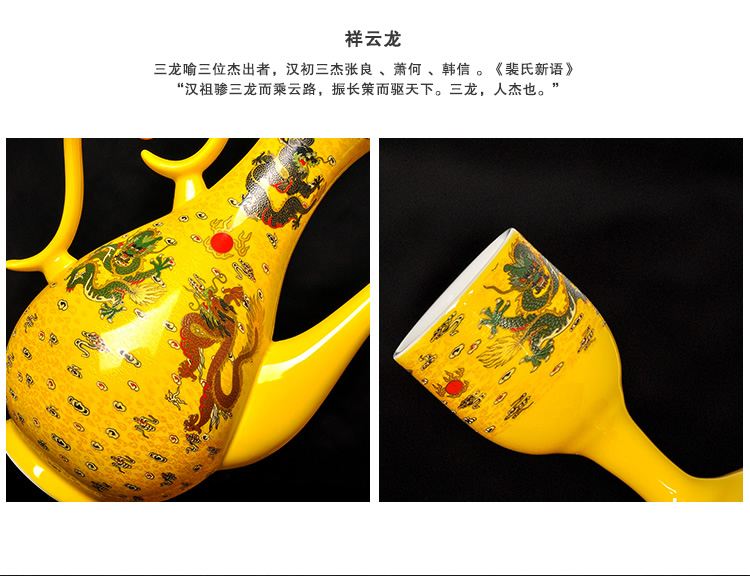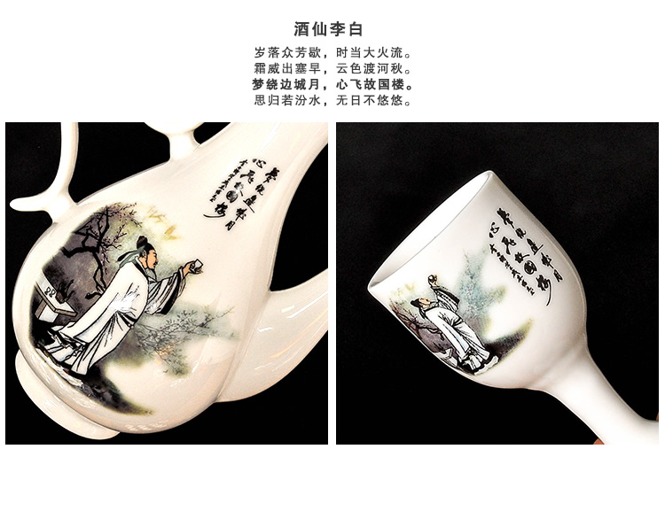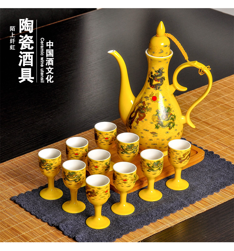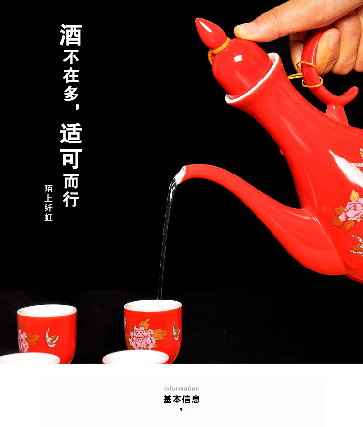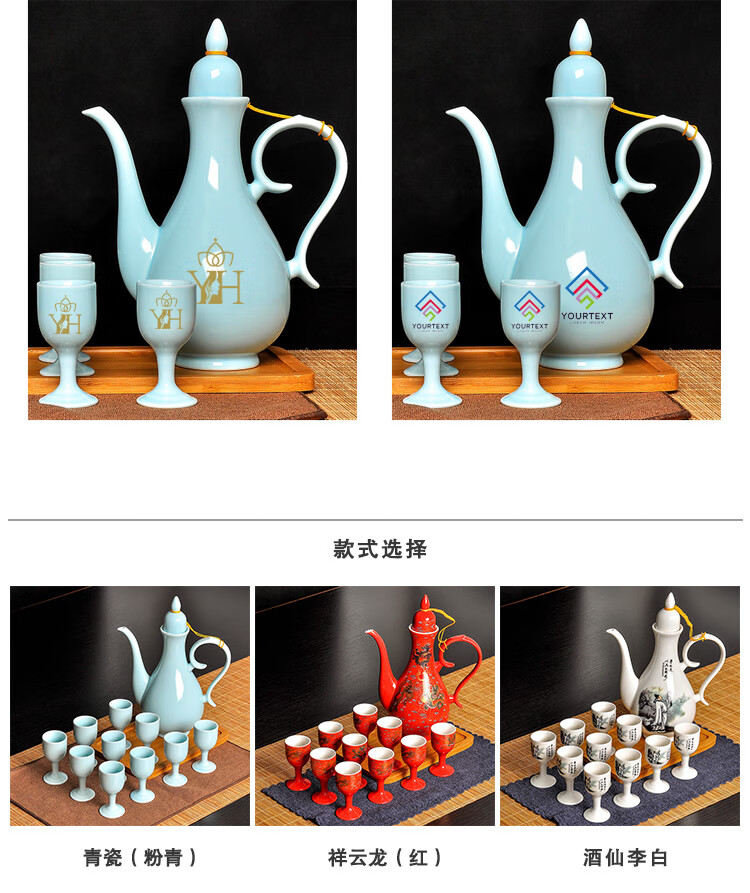 Mo Shang Xianhong ceramic wine set wedding liquor sake cup Qing style retro flask Chinese style household Xianglong high-end gift box set celadon style (gift box with porcelain tray)