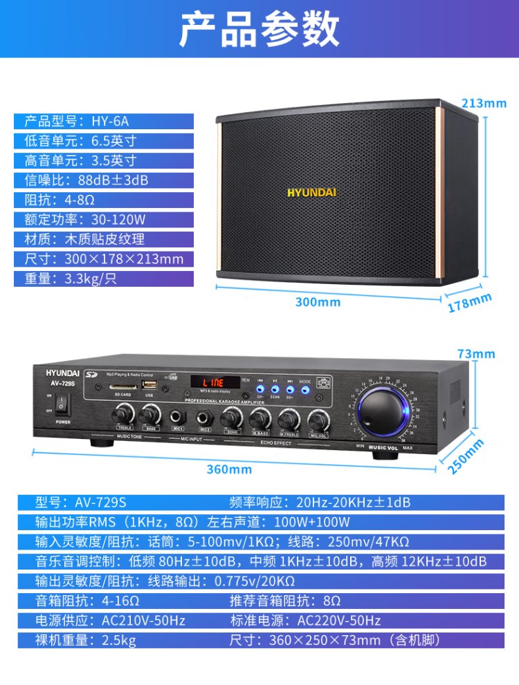 HYUNDAI modern 6.5-inch home theater KTV audio combination home Bluetooth amplifier karaoke conference audio home karaoke computer TV living room audio