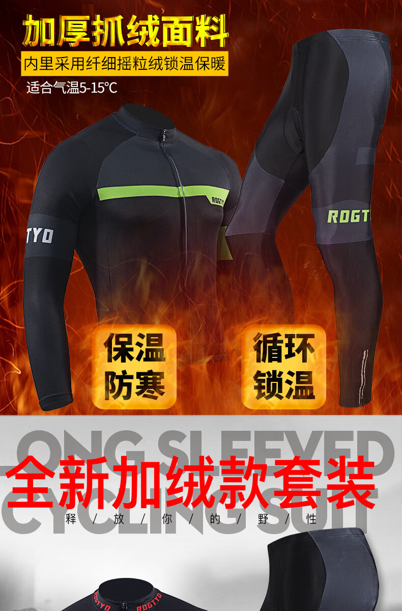 ROGTYO cycling clothing set fleece thickening cycling clothing spring and autumn men and women winter outdoor sports plus fleece warm cycling clothes mountain bike riding equipment RT38-4 fleece cycling clothing XXL