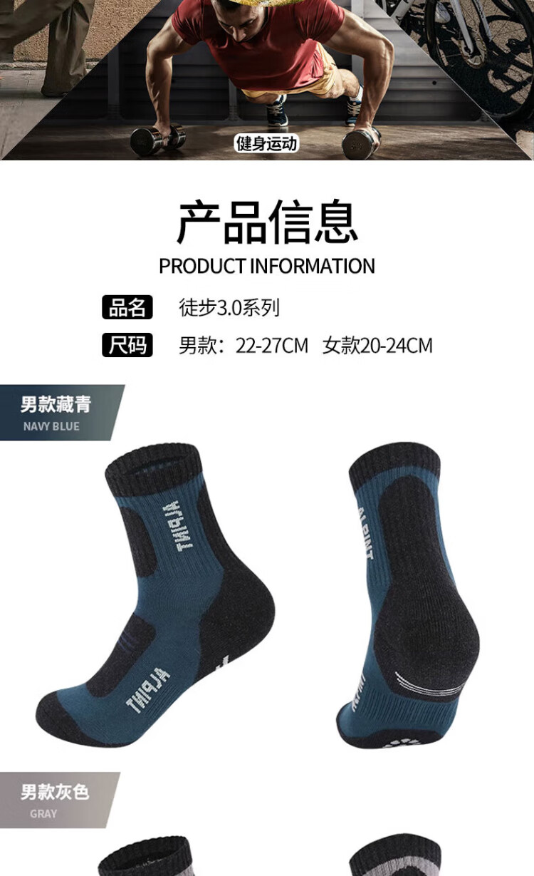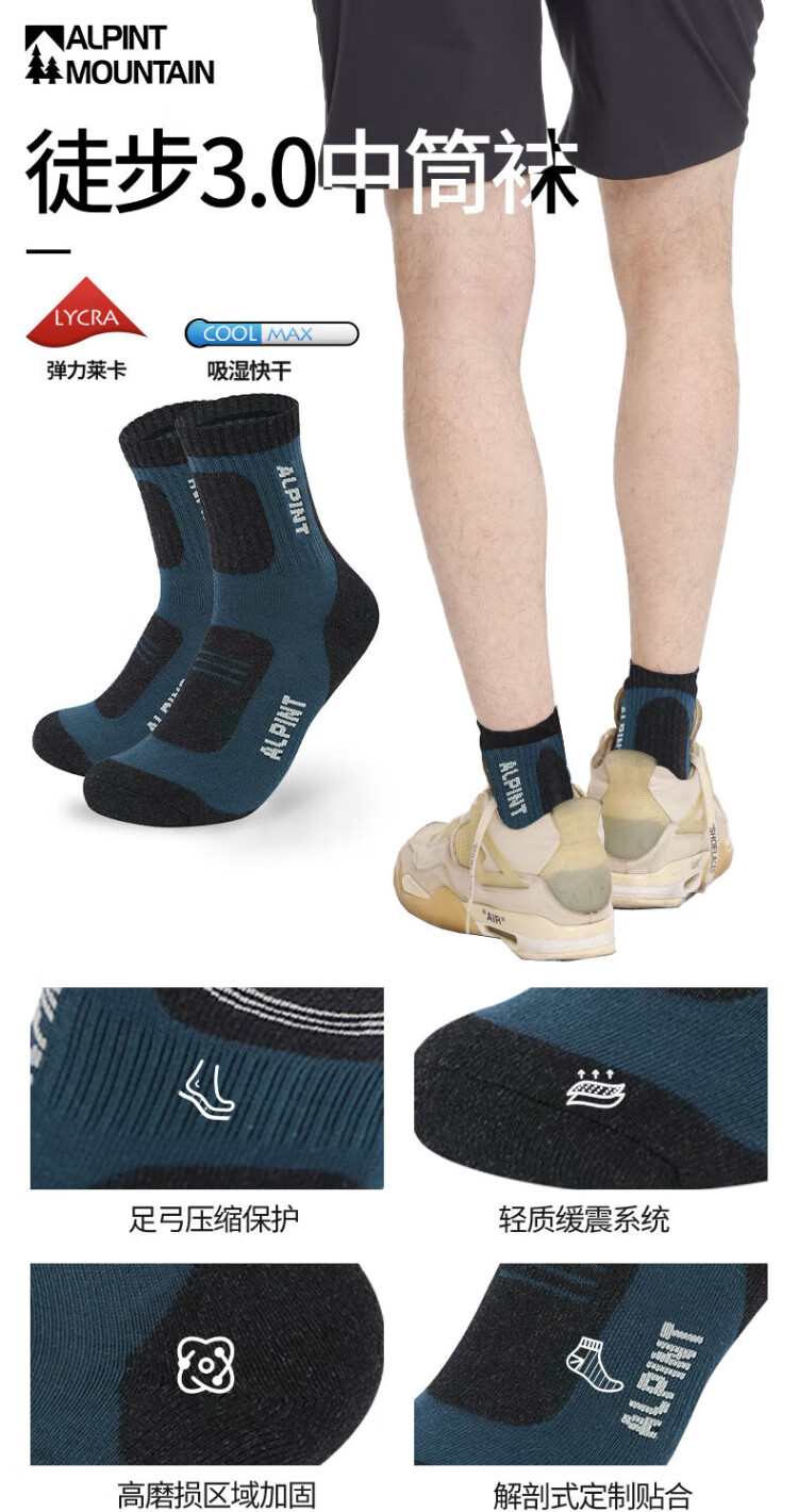 ALPINT MOUNTAIN Elmont outdoor hiking socks men's professional hiking socks CoolMax socks thickened quick-drying breathable sports socks