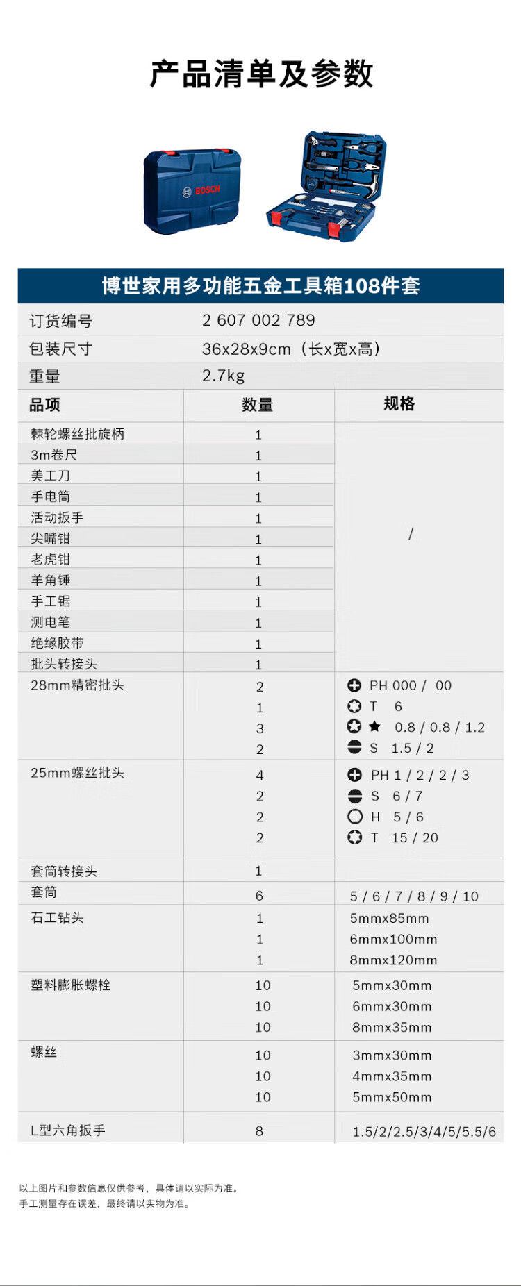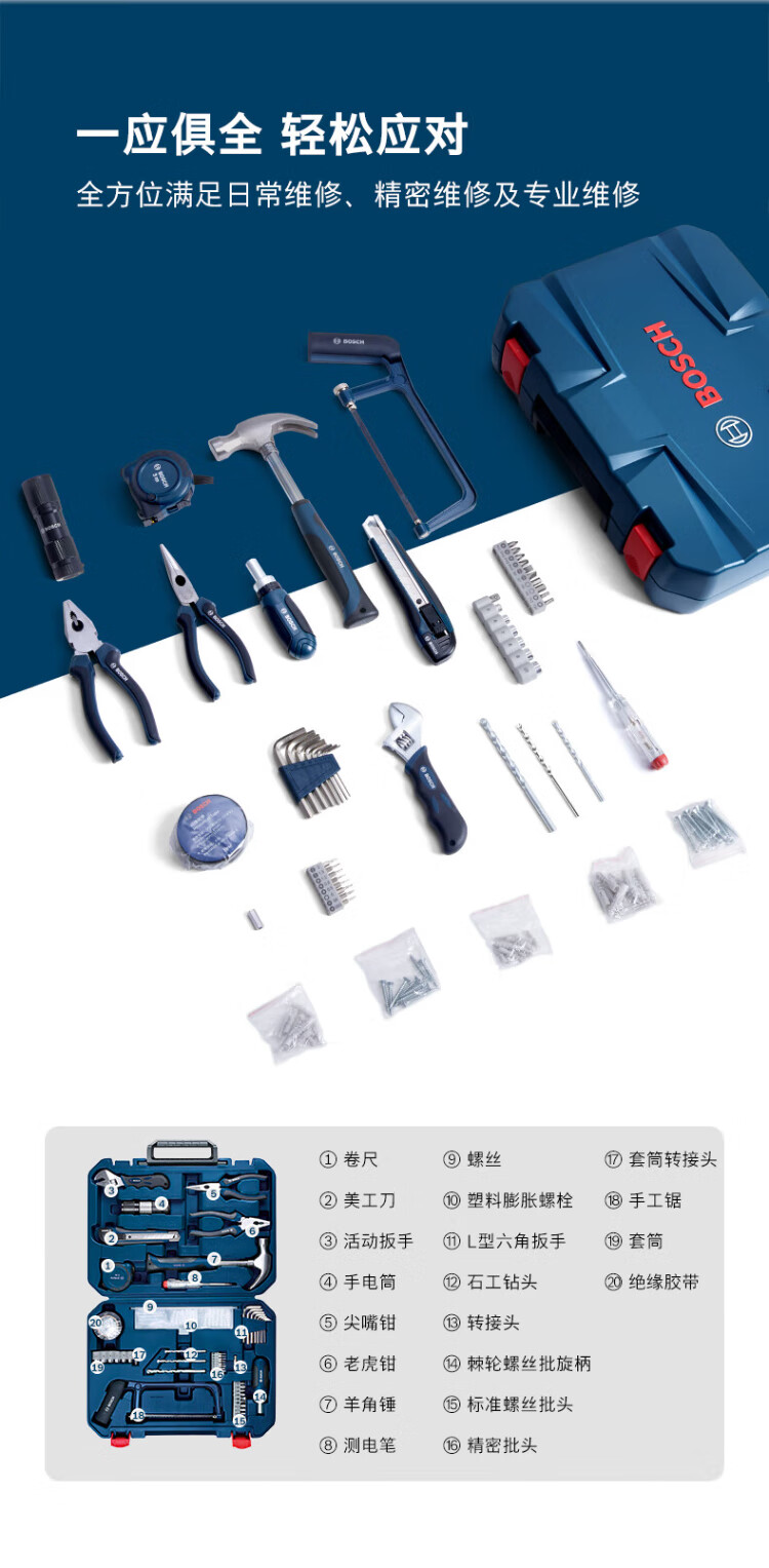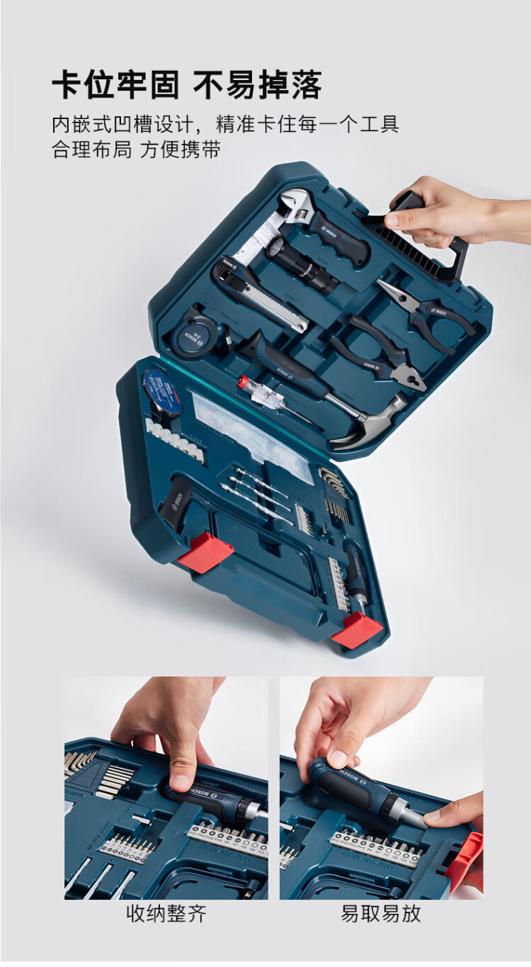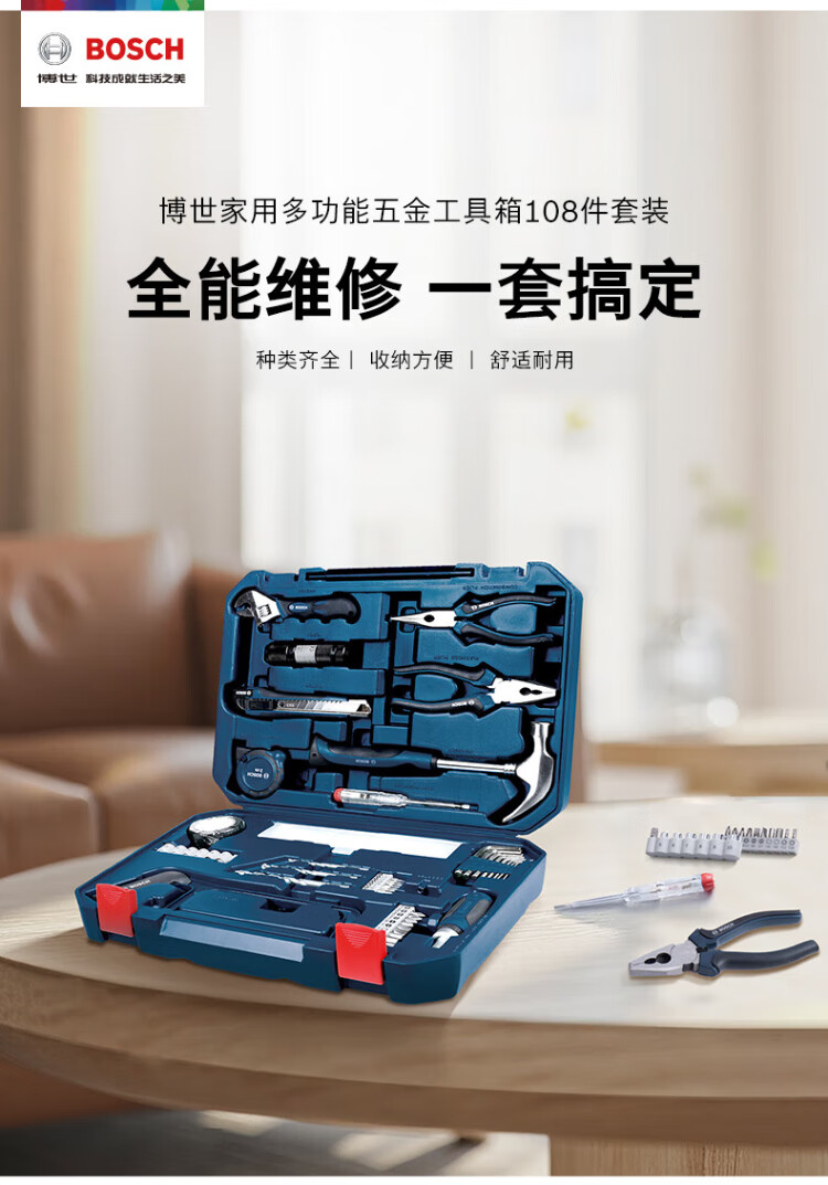 BOSCH Haushalts-Multifunktions-Hardware-Werkzeuge (108 Teile), manueller Werkzeugkasten, Heimwerker-Reparatur, Tische und Stühle, Demontage und Montage, Computer-Demontage
