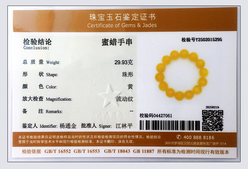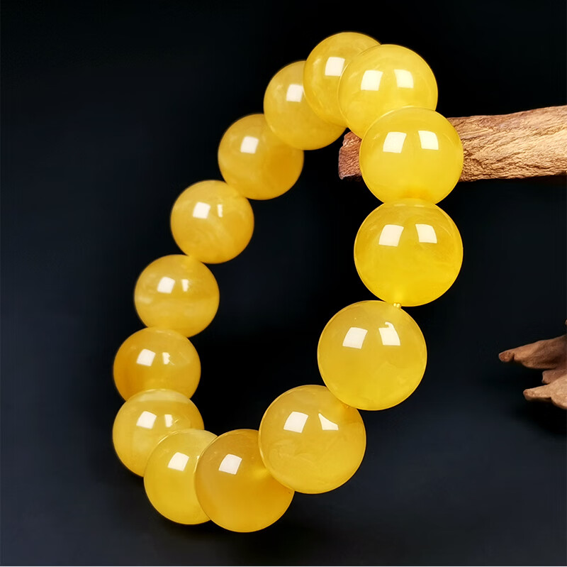 Hupai One thing, one picture, one certificate, natural beeswax bracelet, men's bracelet, Russian raw material, chicken oil yellow, no cracks, bracelet 29.93g 15.6mm