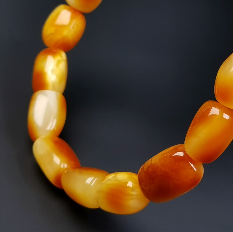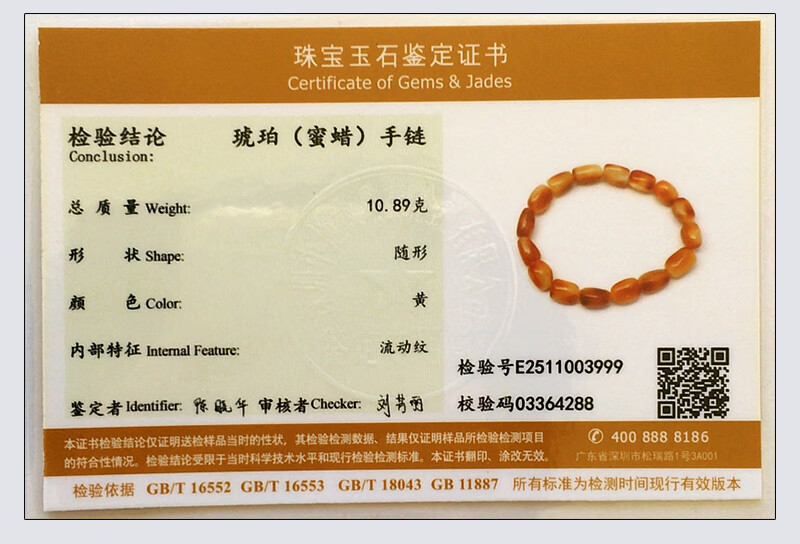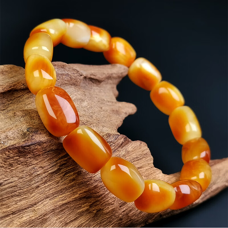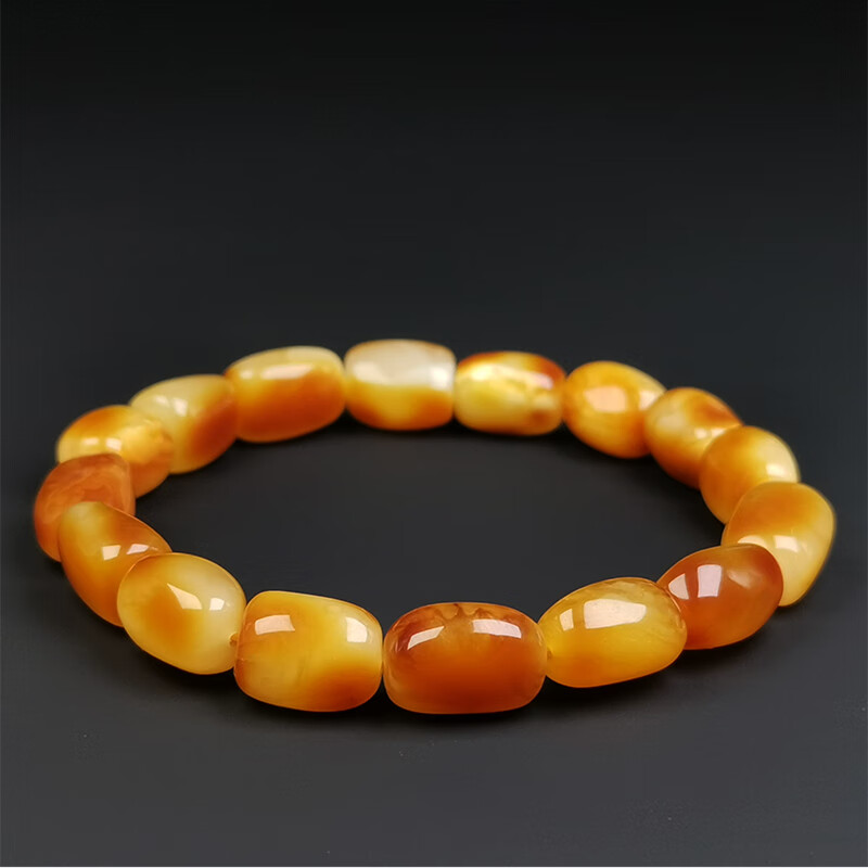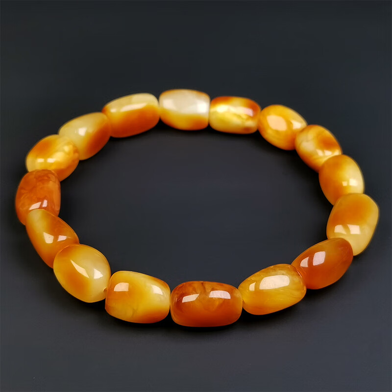 Amber School, one object, one picture, one certificate, men's and women's natural amber, Russian material, white flower beeswax bracelets, no cracks, bracelets, 10.89 grams, 9*12 mm