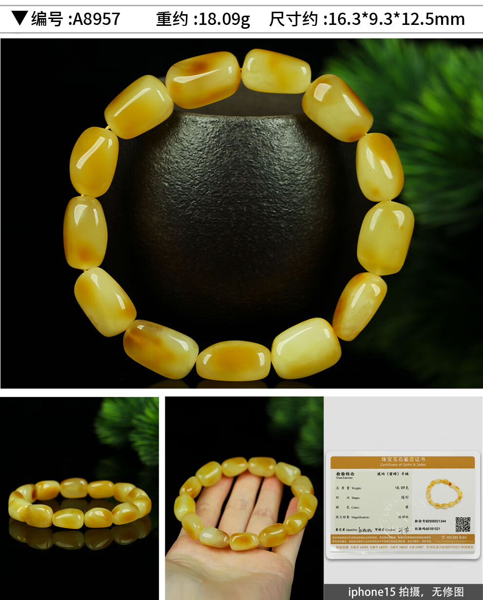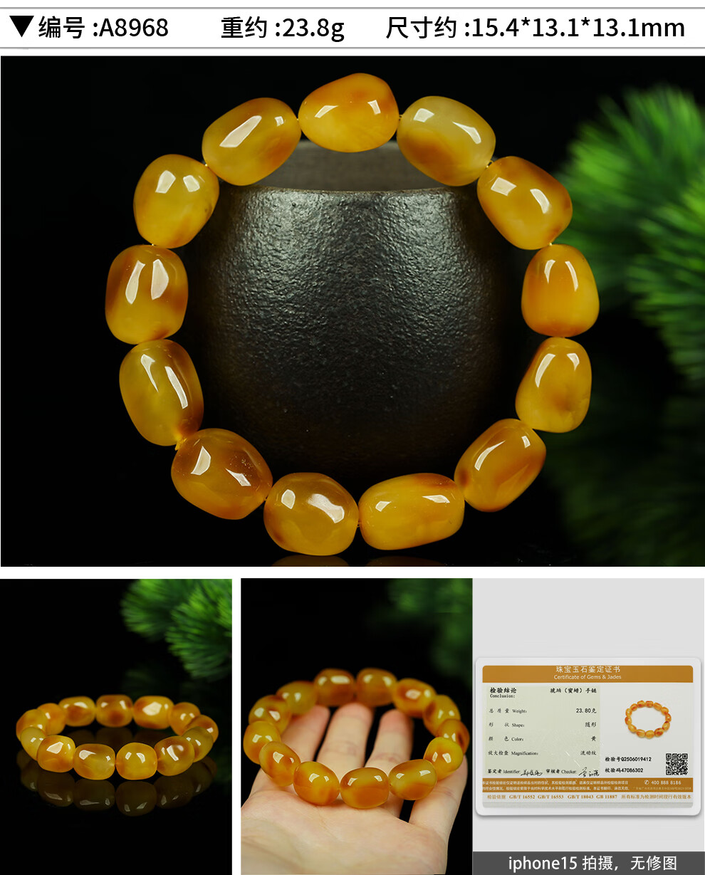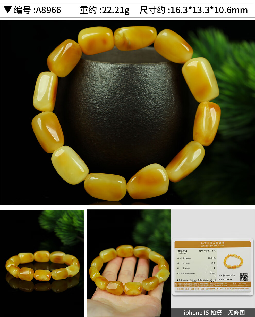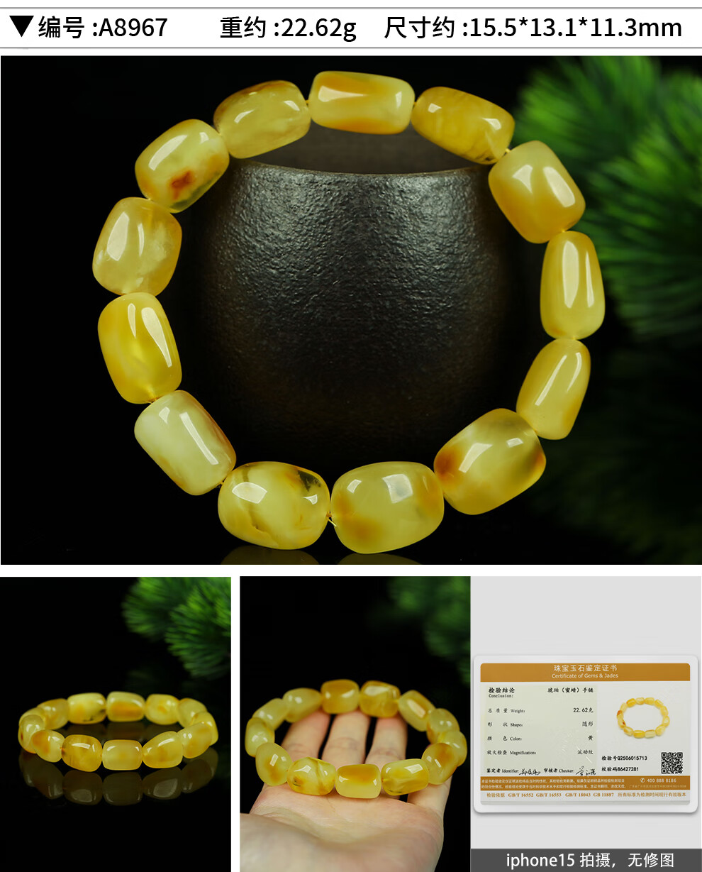 Ouchini beeswax bracelet for women, old beeswax, natural raw stone, chicken fat, yellow and red honey, men's amber bracelet, women's model A7251