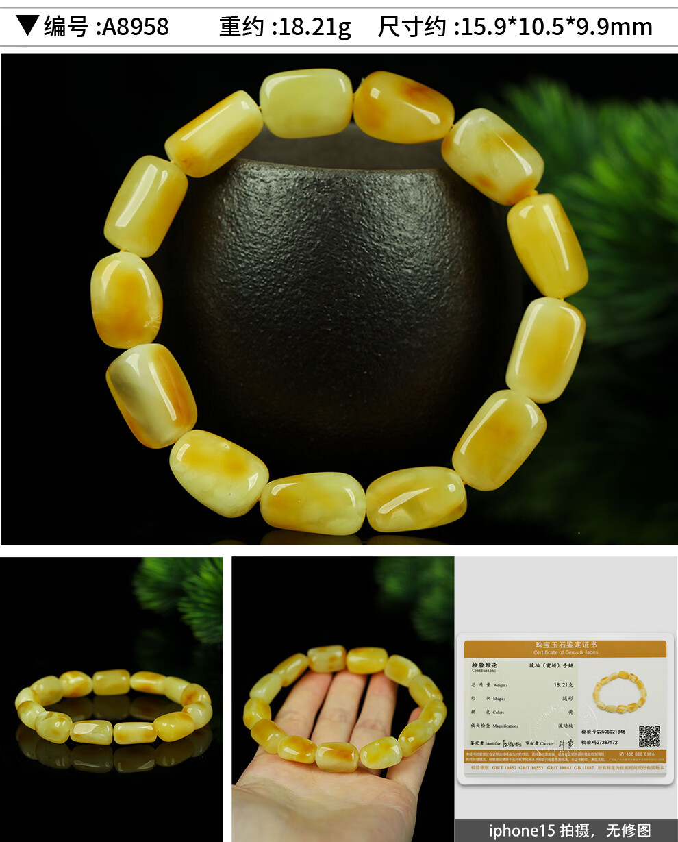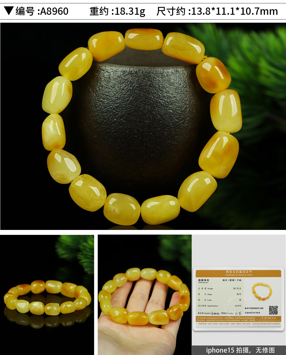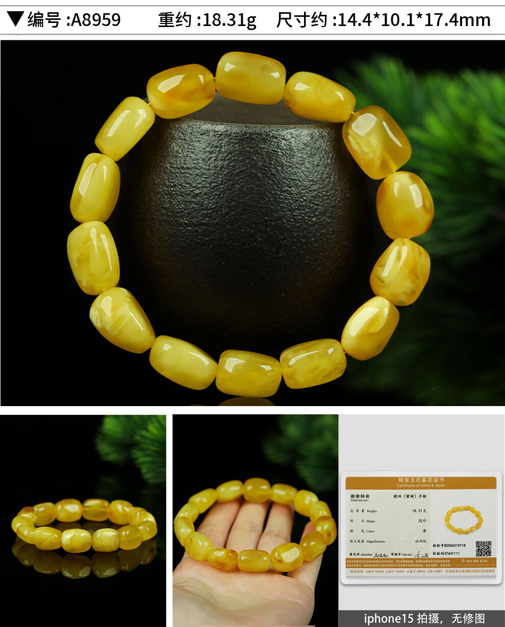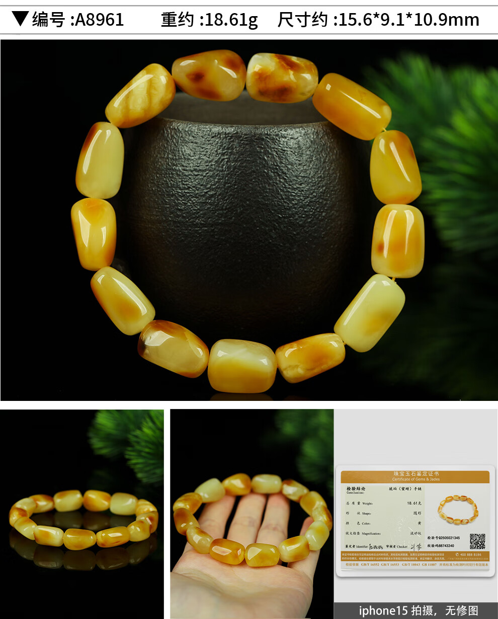 Ouchini beeswax bracelet for women, old beeswax, natural raw stone, chicken fat, yellow and red honey, men's amber bracelet, women's model A7251