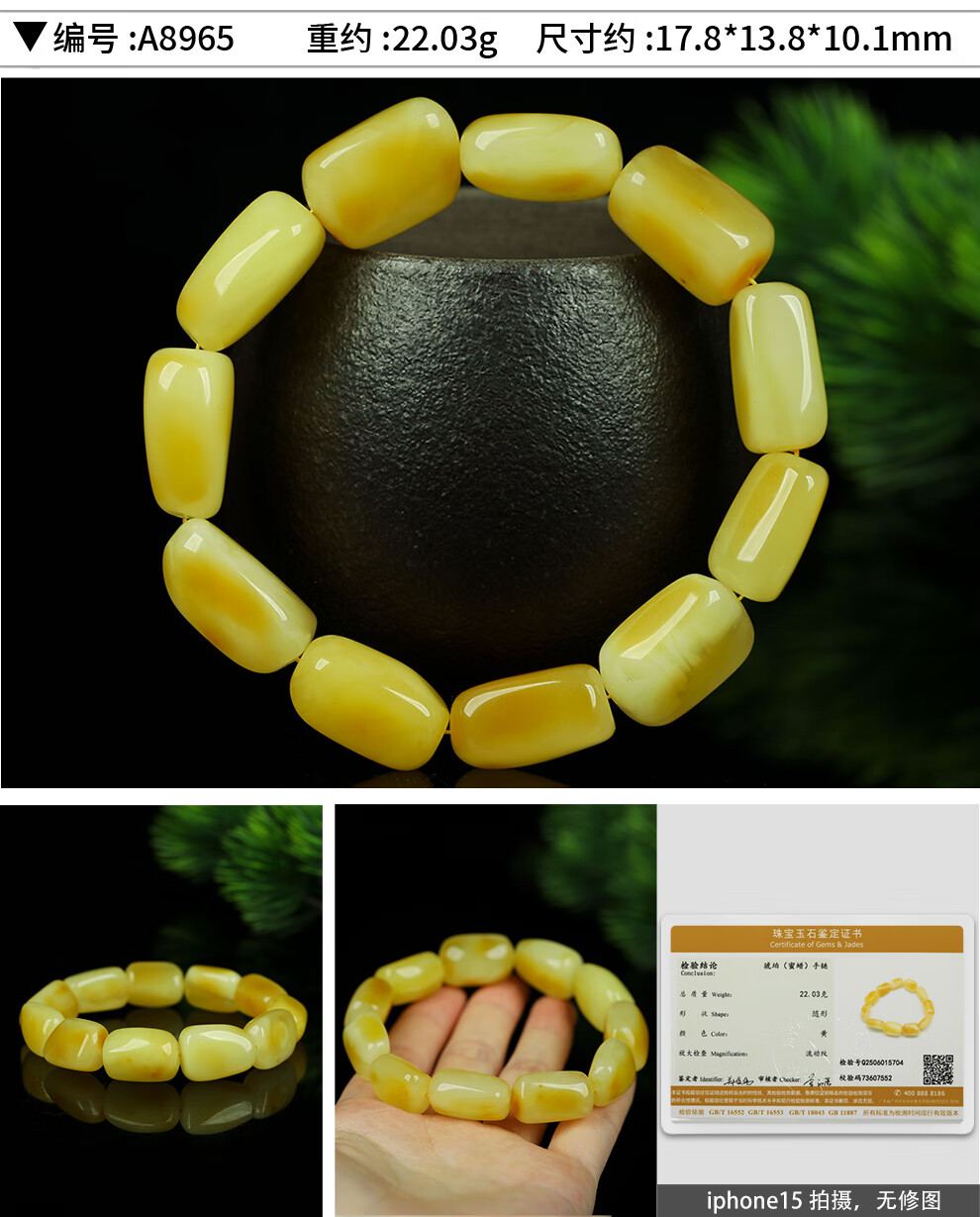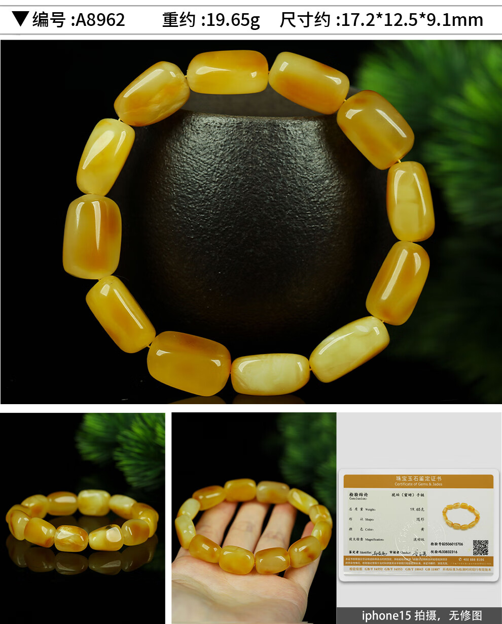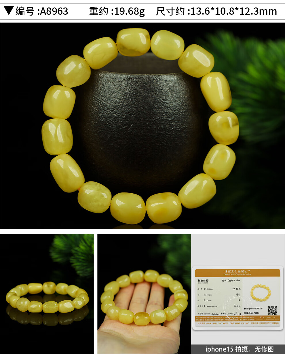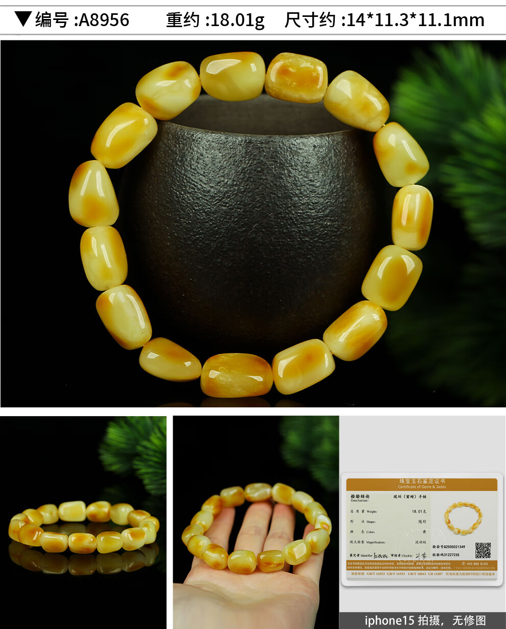 Ouchini beeswax bracelet for women, old beeswax, natural raw stone, chicken fat, yellow and red honey, men's amber bracelet, women's model A7251