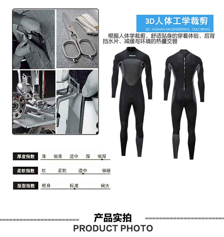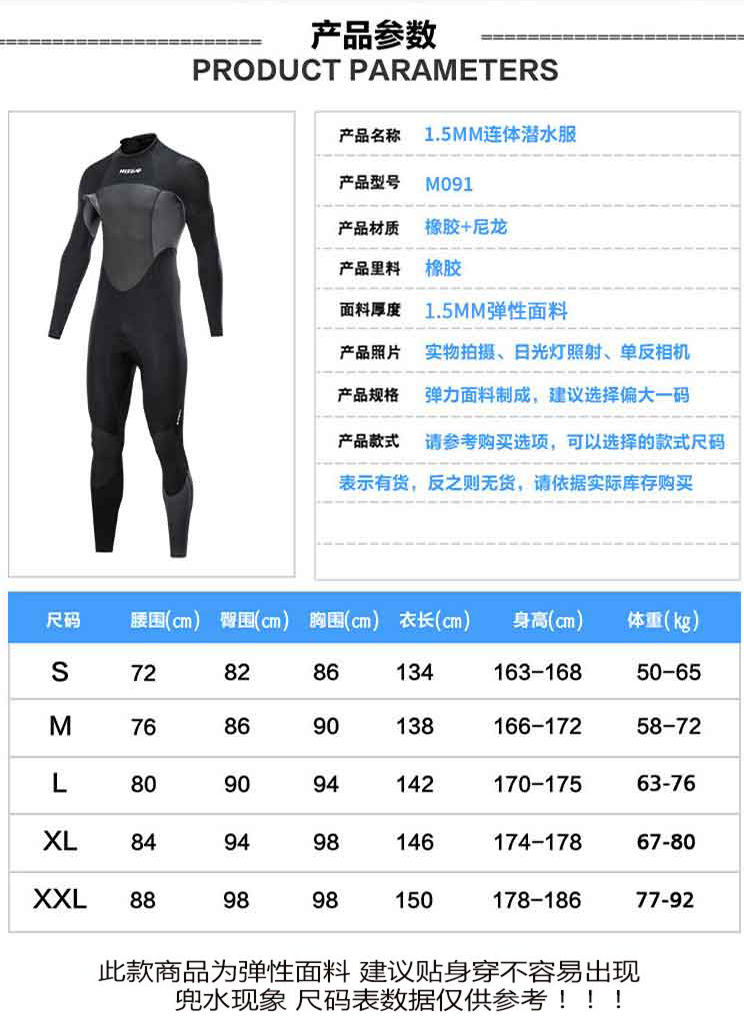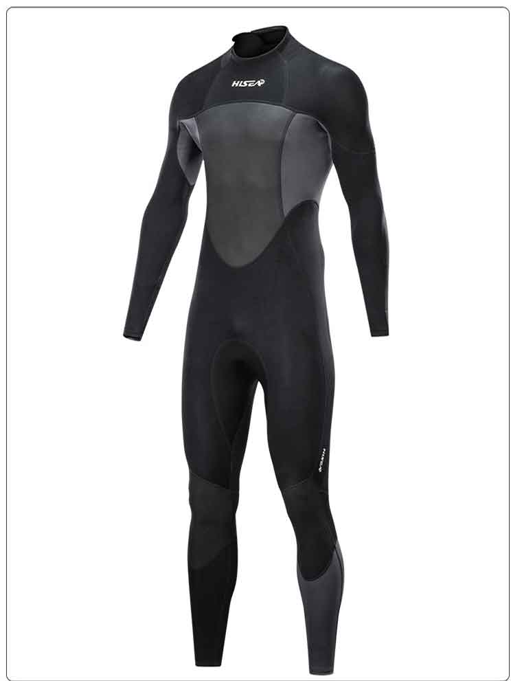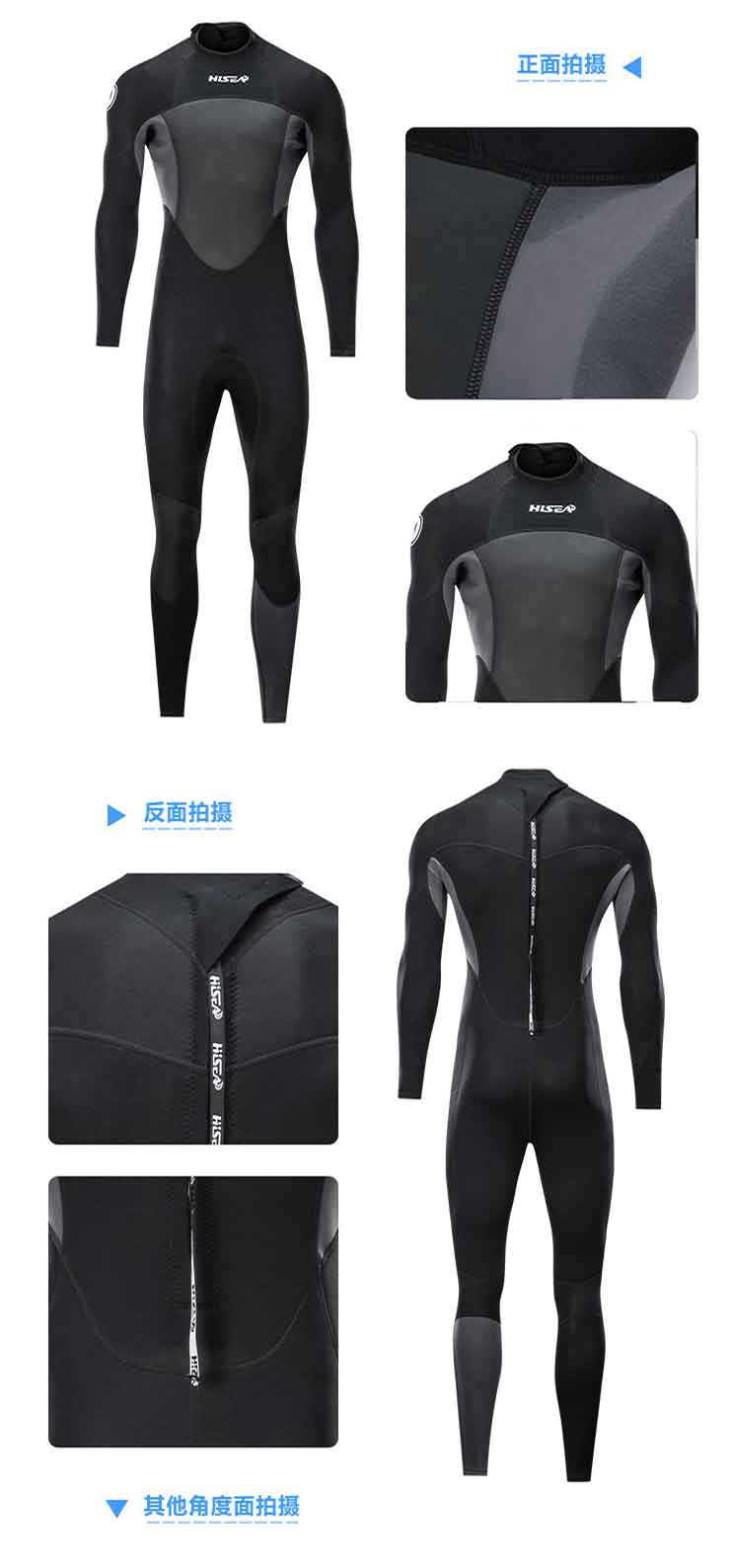 HiSEA new men's warm one-piece swimsuit thick wetsuit 1.5MM long-sleeved cold-proof waterproof mother-in-law swimming surfing suit black XL