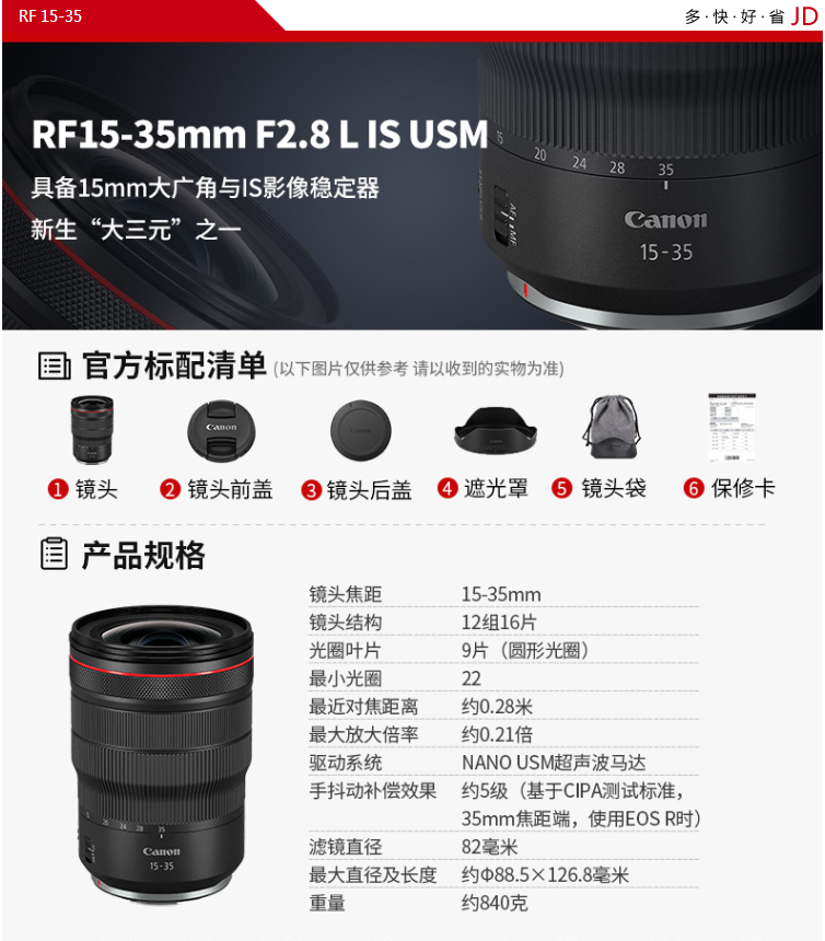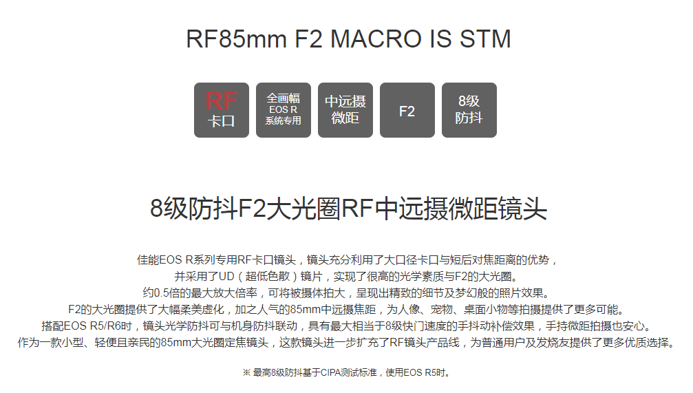 Canon (CANON) EOS R full-frame professional mirrorless zoom lens rf professional microlens suitable for R5 R6 R series mirrorless cameras RF85mmF1.2 L DS