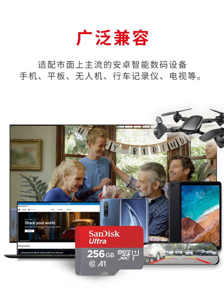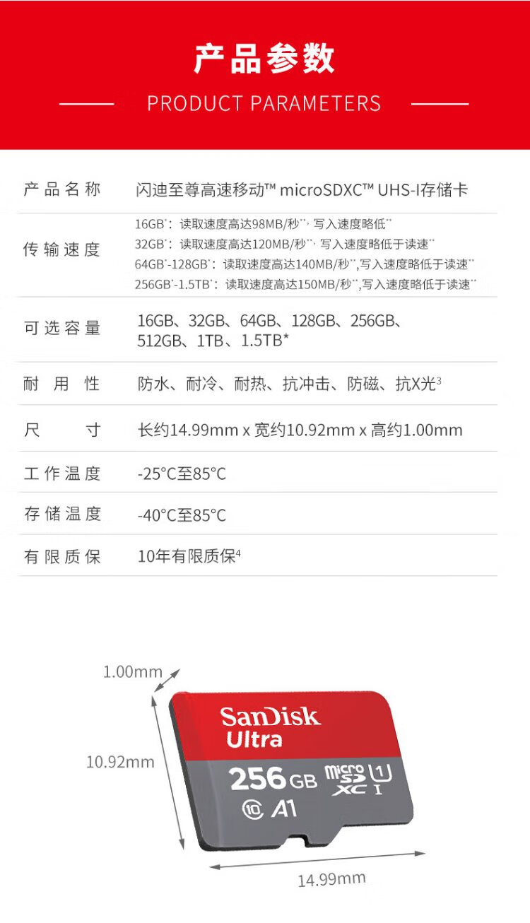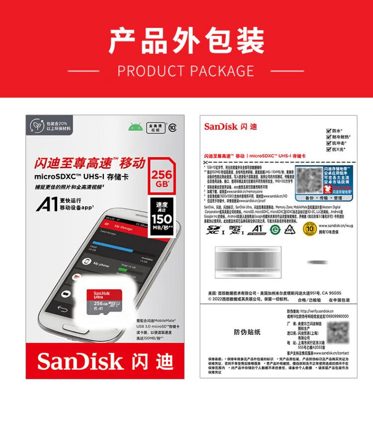 SanDisk 256GB TF (MicroSD) Memory Card A1 U1 C10 Extremely High Speed Mobile Memory Card Reading Speed 150MB/s Memory Card for Mobile Phones, Tablets and Game Consoles