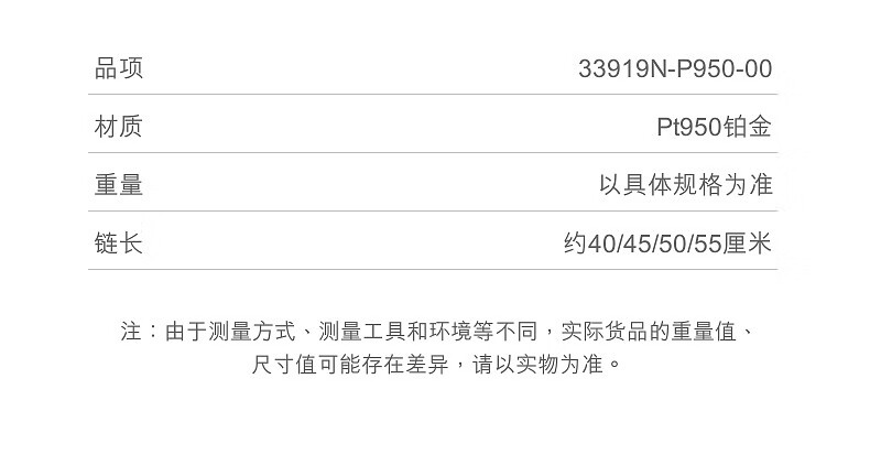Chow Sang Sang Pt950 Platinum Necklace Versatile White Gold Necklace Plain Chain Clavicle Chain 33919N Price 40cm - 11.85g (including labor cost 740 yuan)