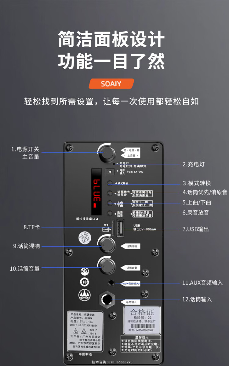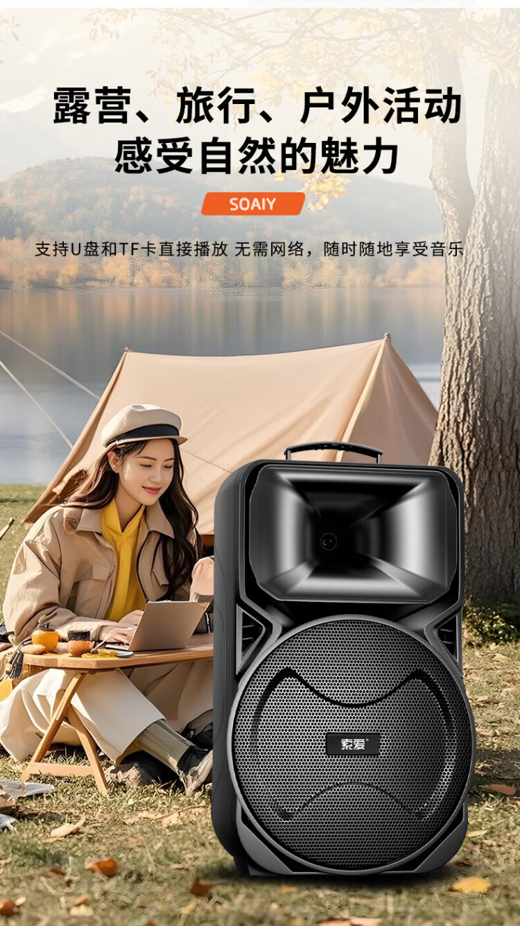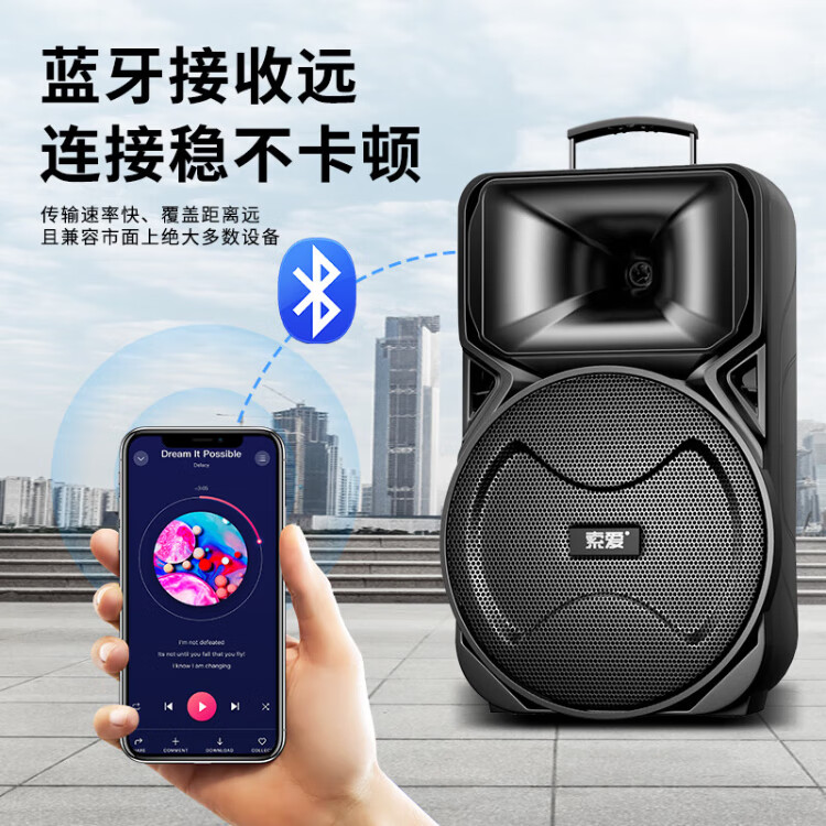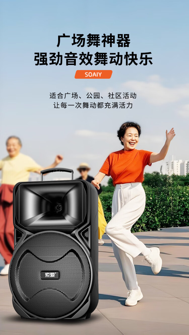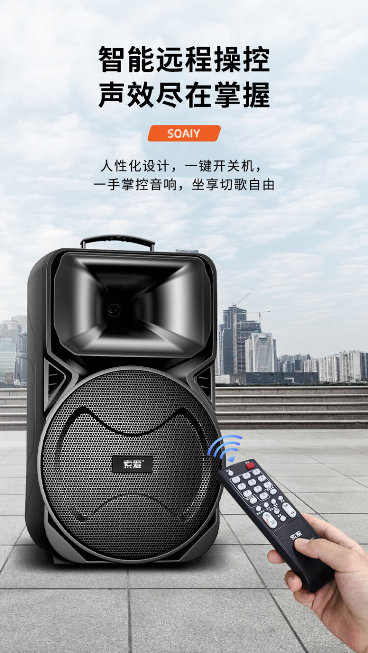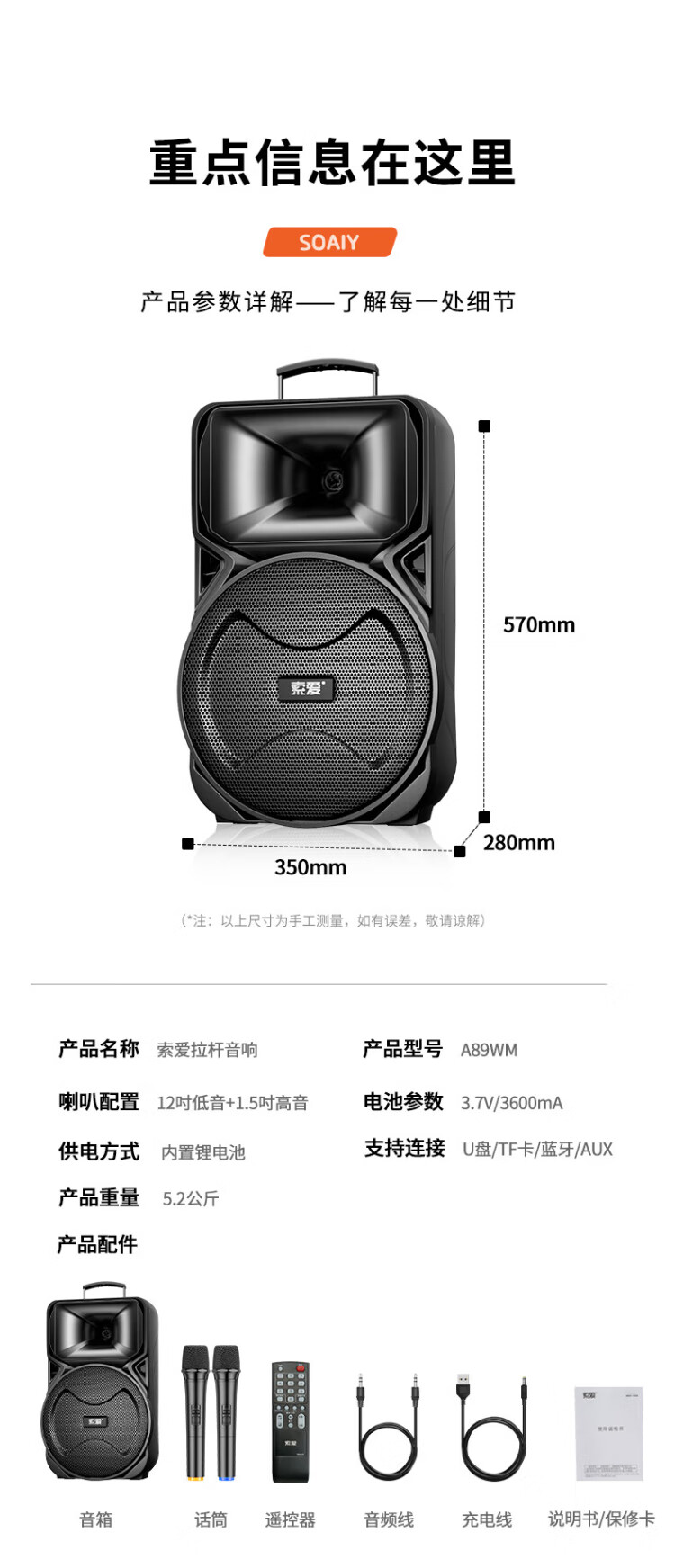 Sony Ericsson (soaiy) 12-inch square dance audio high-power portable outdoor heavy bass Bluetooth karaoke special high-volume mobile trolley speaker outdoor performance equipment dual microphone A89WM