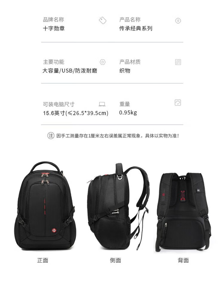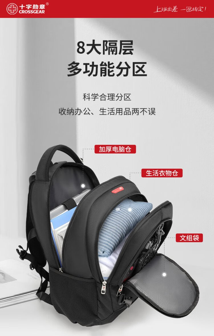 CROSSGEAR Swiss Army Knife Backpack Men's 15.6-inch Laptop Bag Business Large Capacity Travel School Bag Student