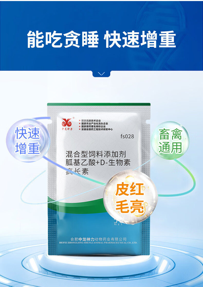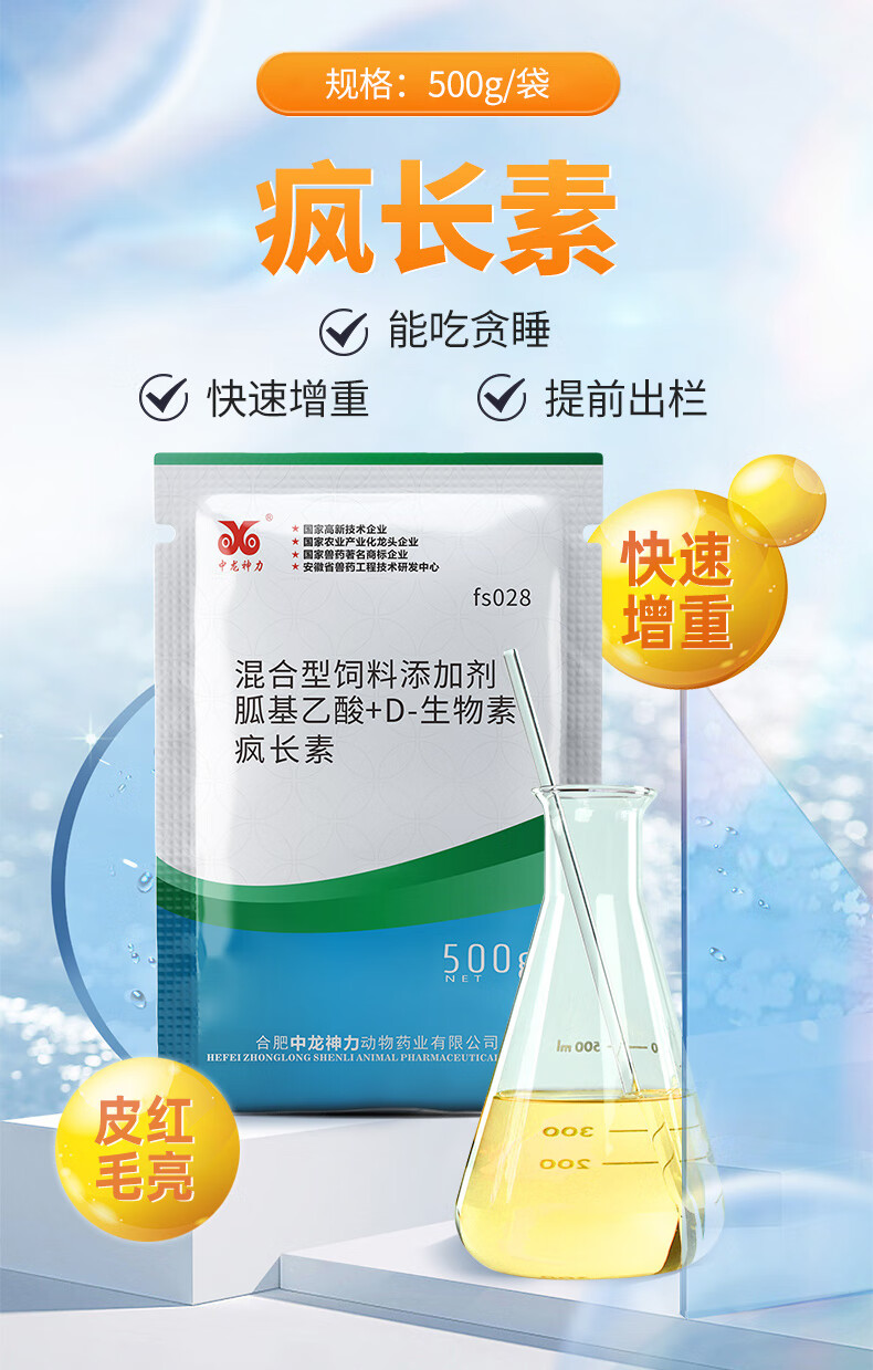 Кормовая добавка Zhonglong Shenli для свиней, крупного рогатого скота и овец для откорма и стимулирования роста цыплят, уток и гусей. Многомерные пробиотики для откорма для жевания, Madnessin 500 г, 1 пакетик
