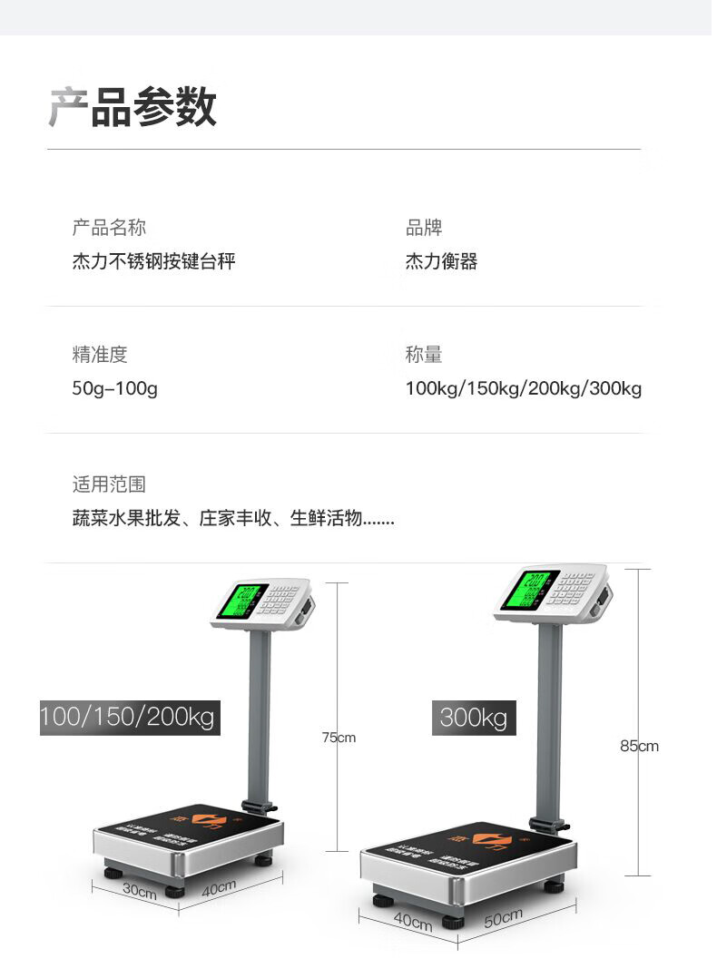 Jieli electronic scale commercial platform scale accurate 200 small weighing household 100kg 150kg express scale food scale larvae scale fruit pricing scale 150kg LCD large screen 30*40 table