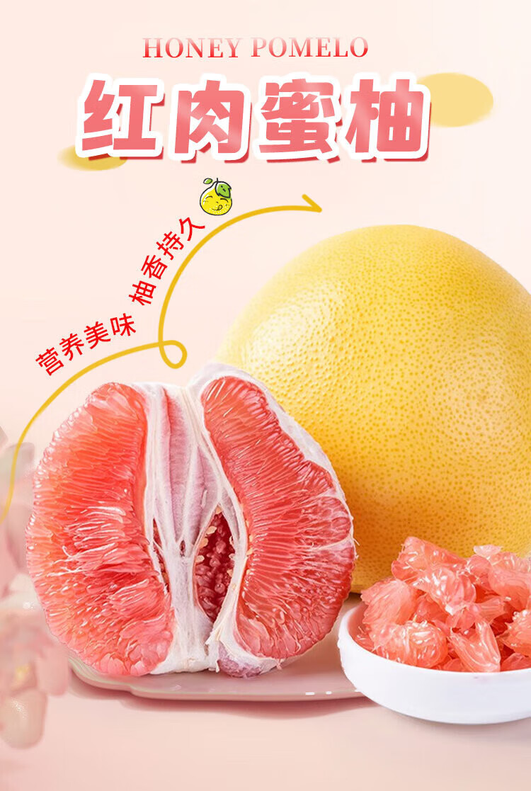 Jingxiansheng Fujian Red Heart Honey Pomelo, 4 large fruits, net weight about 10-12 Jin Jin is equal to 0.5 kg, fresh pomelo fruit gift box