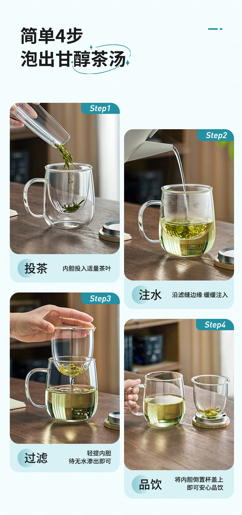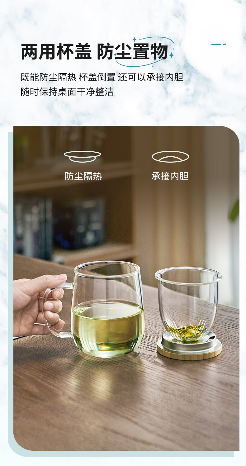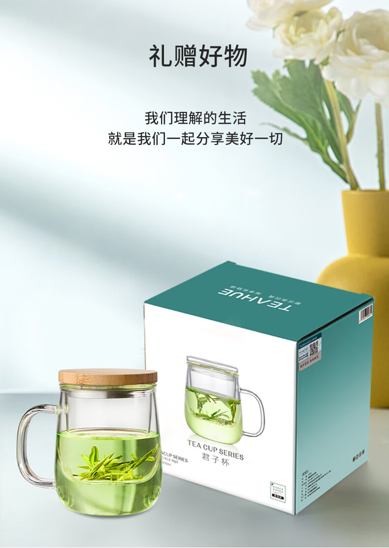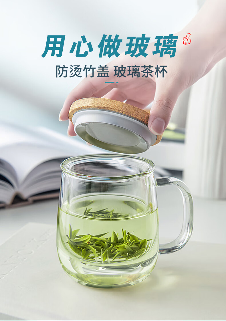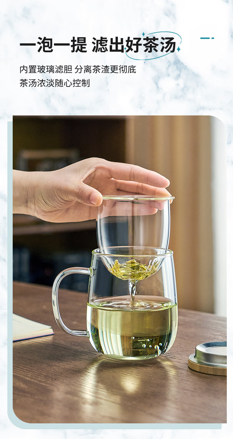 YIHUTEA tea cup tea water separation glass office household water cup men's tea cup glass high borosilicate green tea cup enlarged and thickened 500ML bamboo lid glass cup