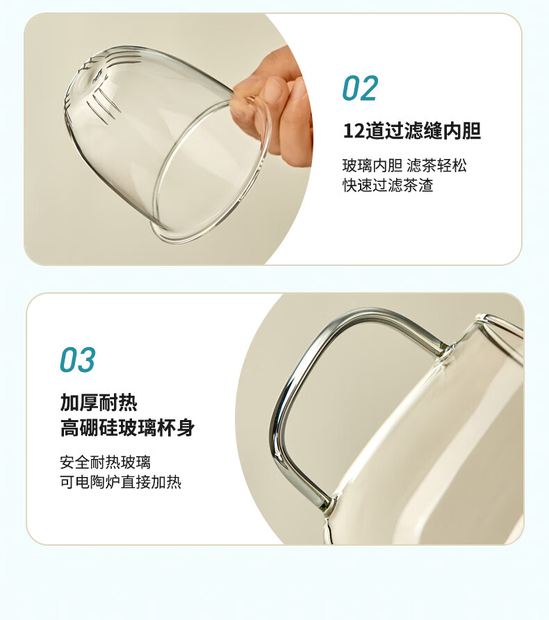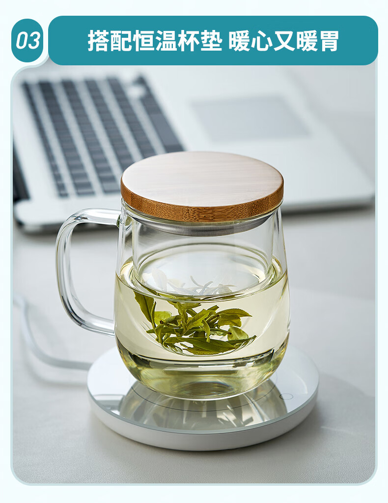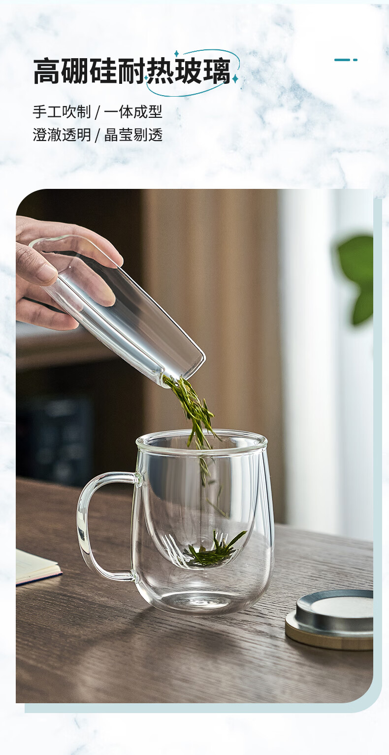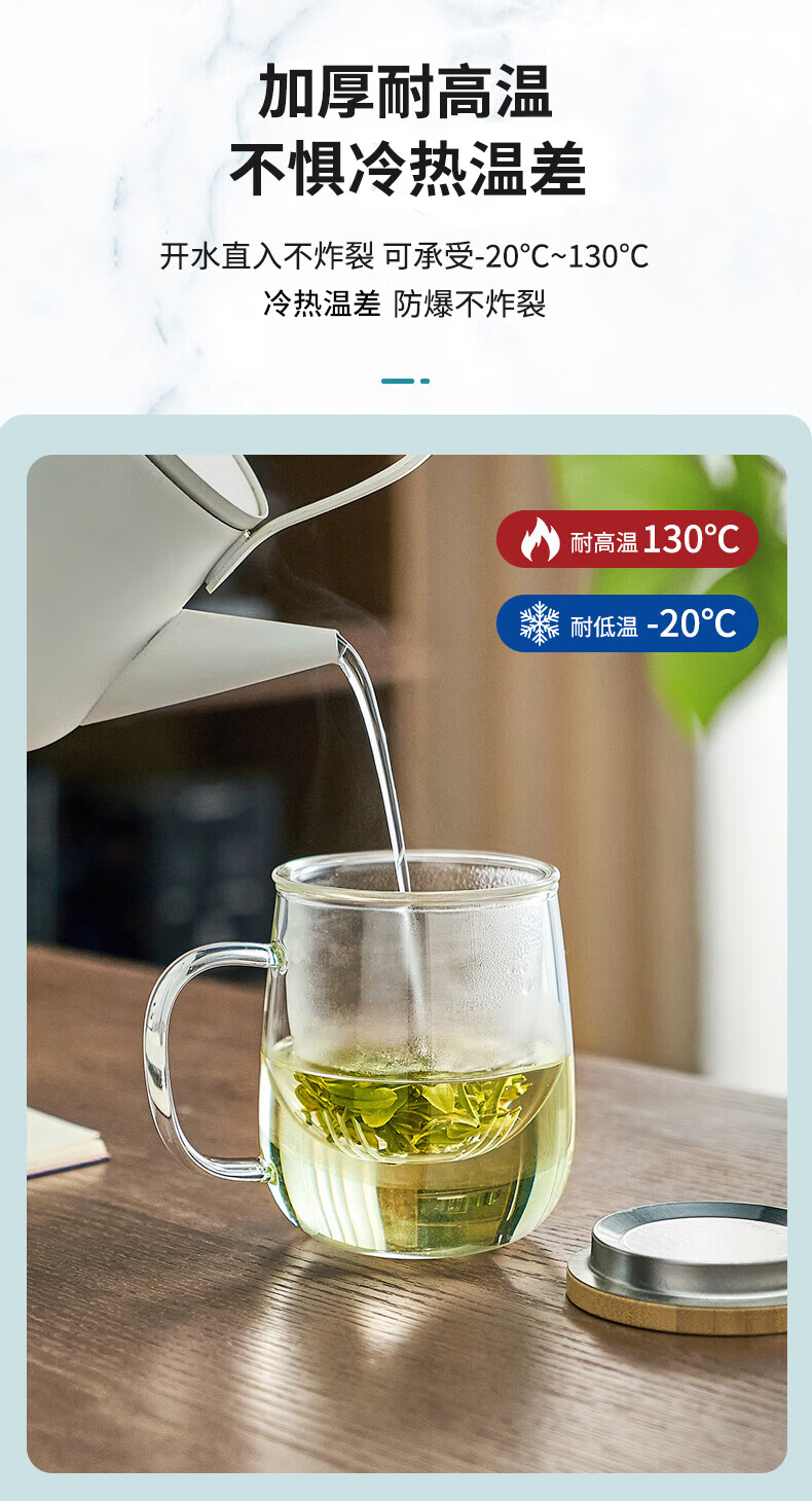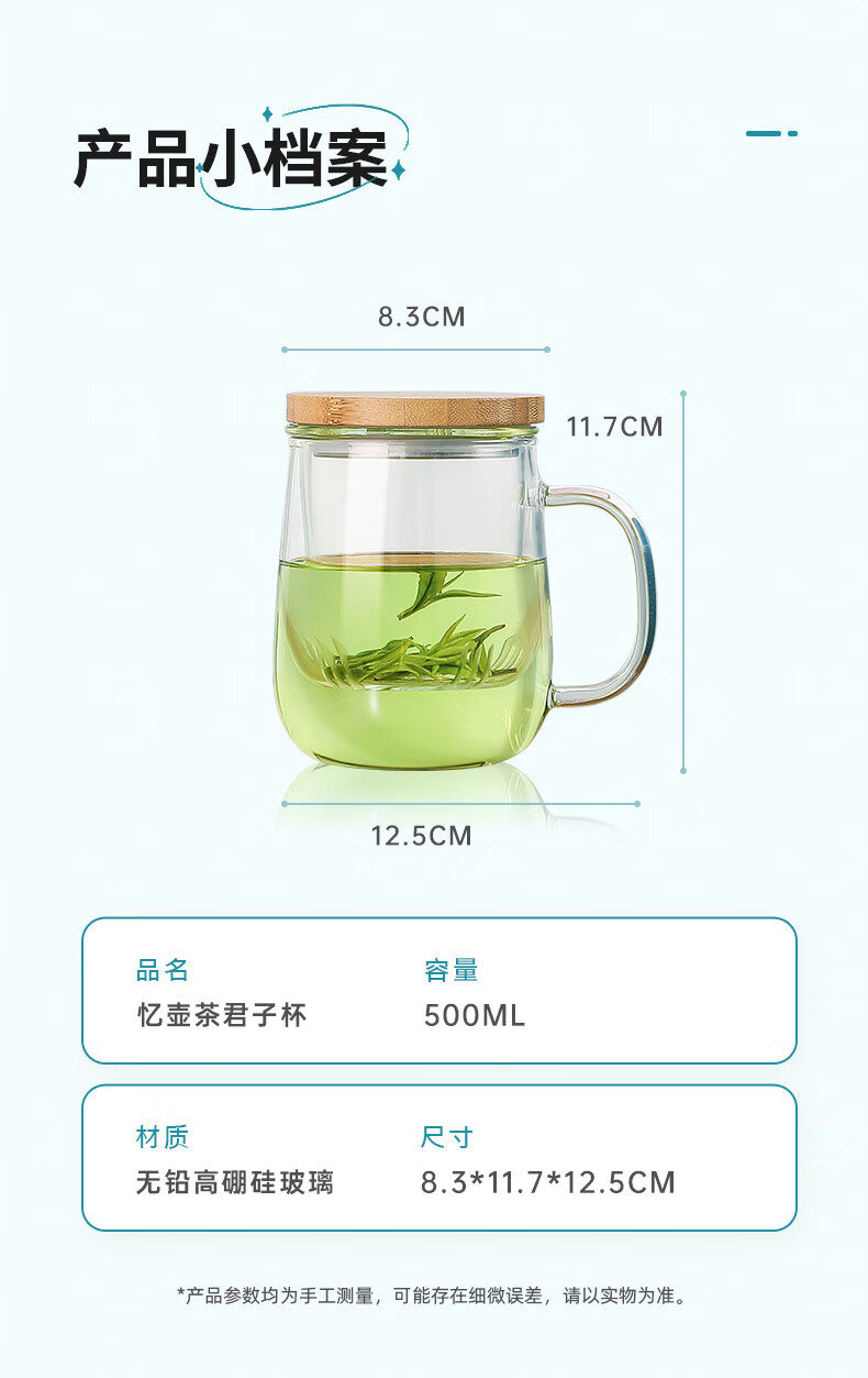 YIHUTEA tea cup tea water separation glass office household water cup men's tea cup glass high borosilicate green tea cup enlarged and thickened 500ML bamboo lid glass cup