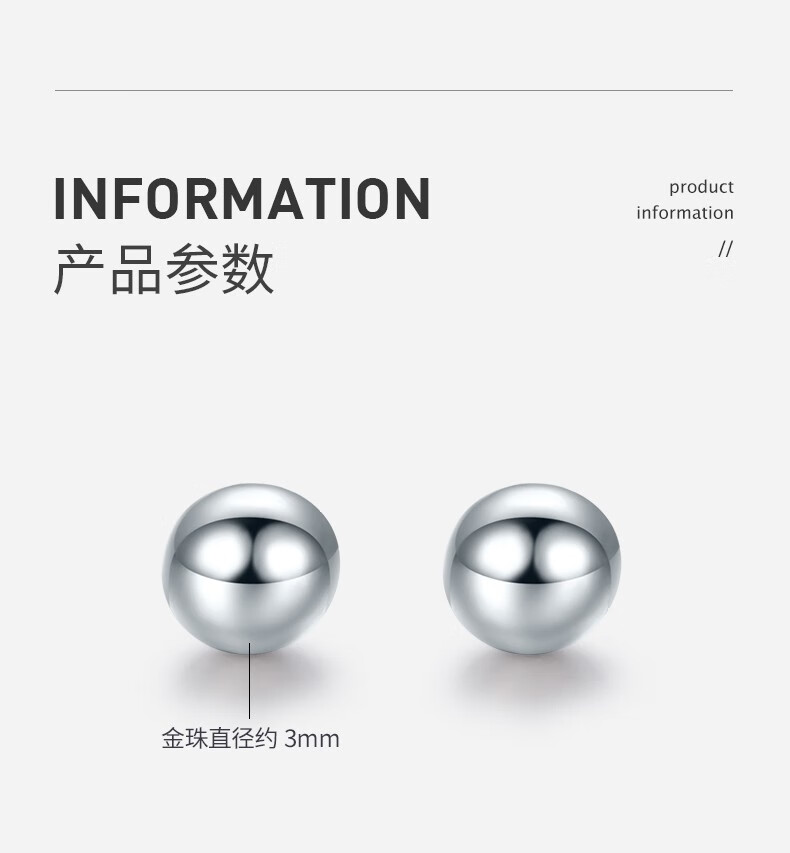 ZLF (ZLF) PT950 platinum earrings for women, platinum versatile glossy round bead earrings to support ears 1.27g