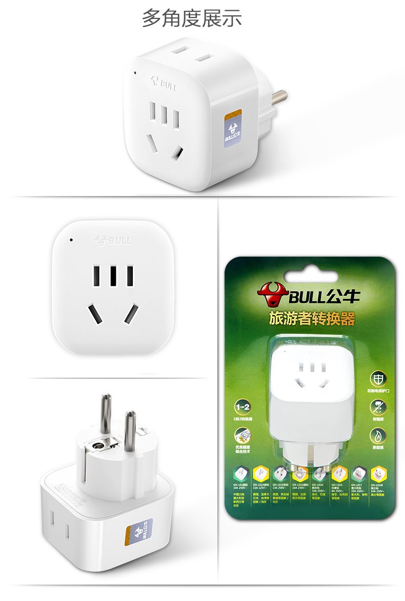 Bull overseas travel converter plug Hungary Vietnam Afghanistan Syria Israel power conversion socket single plug GN-901G can plug 1 electrical appliance