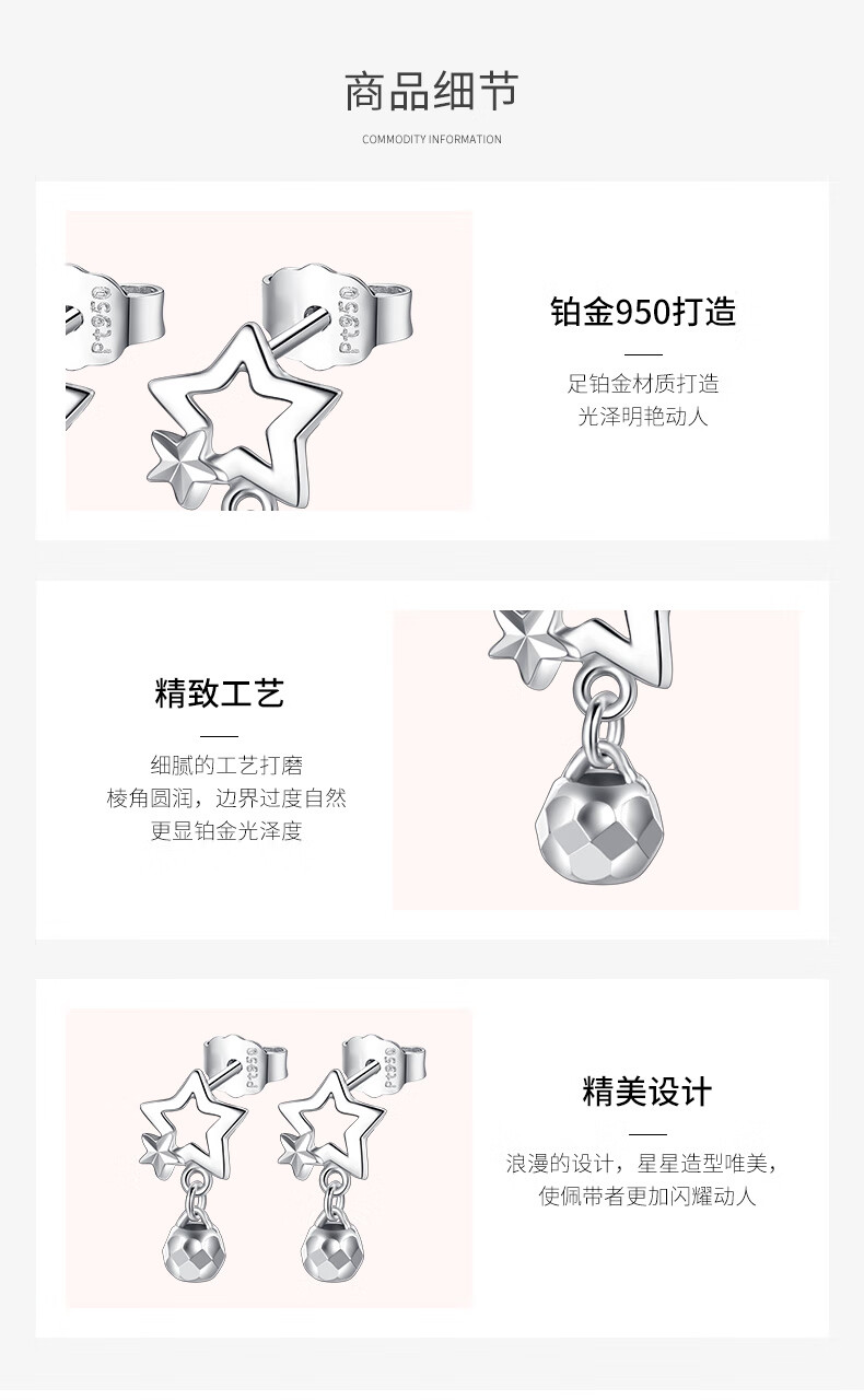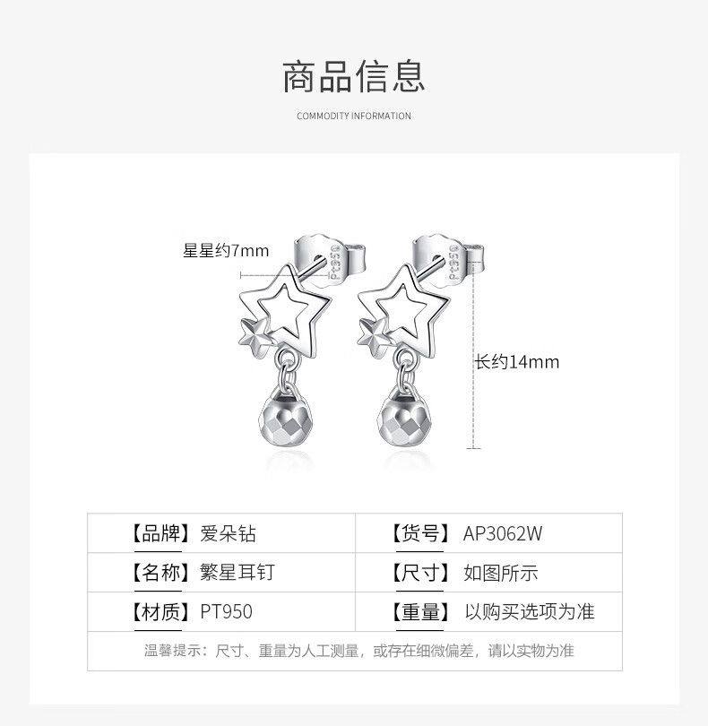 Aido Diamond pt950 platinum star earrings for women, fashionable platinum earrings, versatile earrings gift for wife, weight 1.9-2.1 grams + delivery certificate