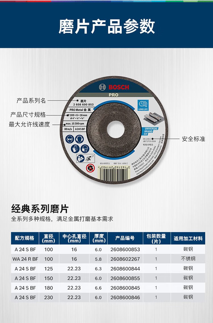 Bosch (BOSCH) metal grinding disc (1 piece) 5 inches, outer diameter 125mm